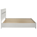 - Bed includes convenient storage at the footboard and features a fully slatted base to support mattress ventilation and durability