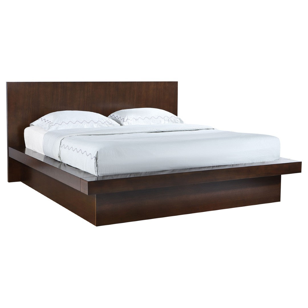 Elevate your bedroom with a warm, inviting centerpiece that blends traditional craftsmanship with modern convenience. This panel bed features a structured silhouette, rich cappuccino finish with espresso undertones, and built-in LED lighting for subtle ambient illumination—perfect for creating a cozy, sophisticated retreat.