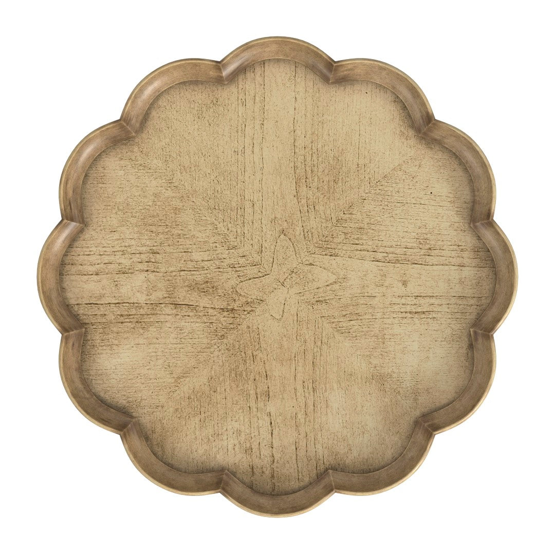 - Product Features 3: Four-way matched veneer top with scalloped edge pattern and raised sides