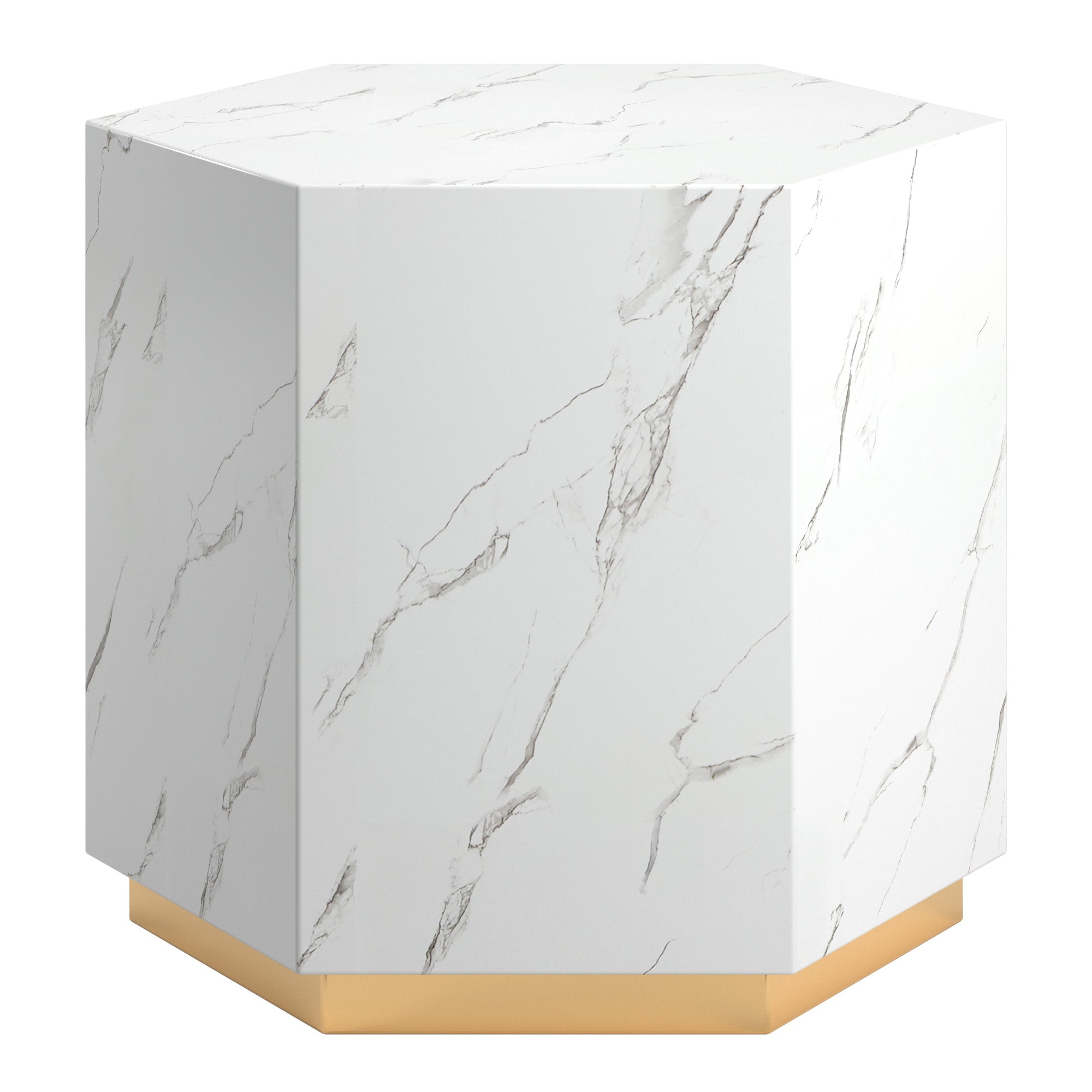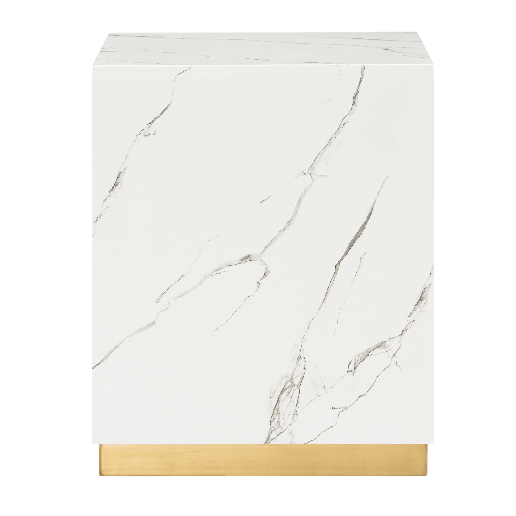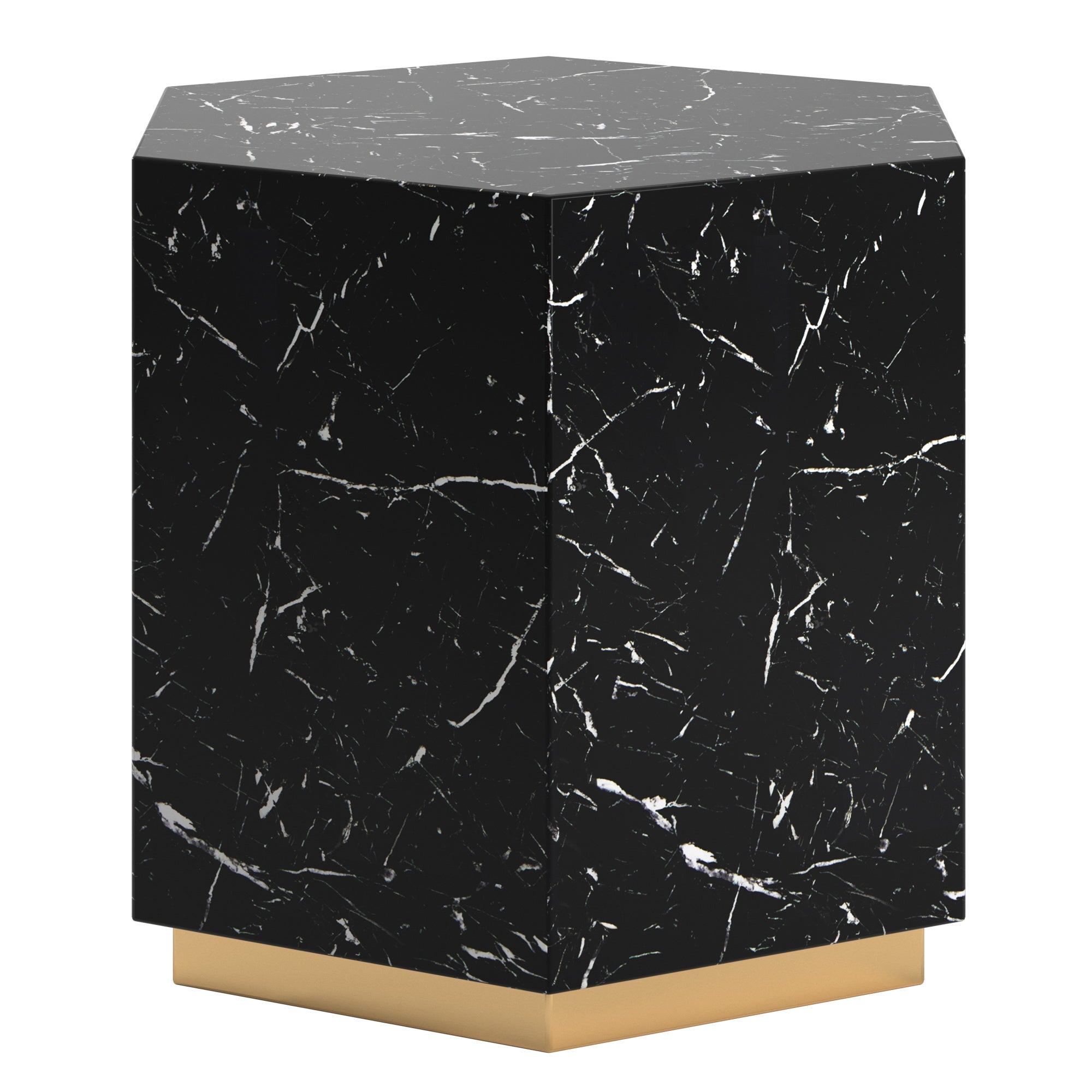 - Made with stainless steel, faux marble, and MDF
