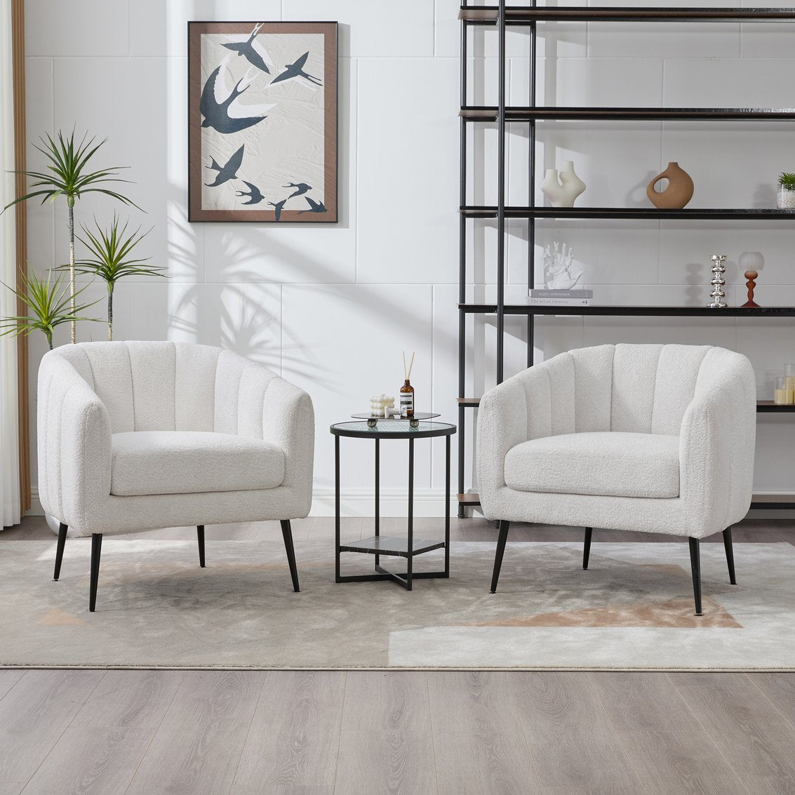 - Design Details: Barrel silhouette with round arms and channel tufted tight back for modern flair