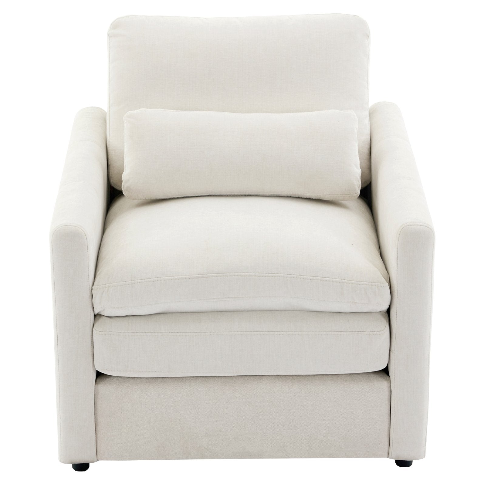 Sink into cloud-like comfort with this oversized, plush armchair designed for modern living rooms. Upholstered in soft chenille and built with a double-layered seat cushion and ergonomic curved arms, it balances long-lasting support with elegant styling. Thoughtful details—like a detachable lumbar pillow, refined stitching, and durable pocket-spring construction—make this chair both a cozy retreat and a stylish focal point.
