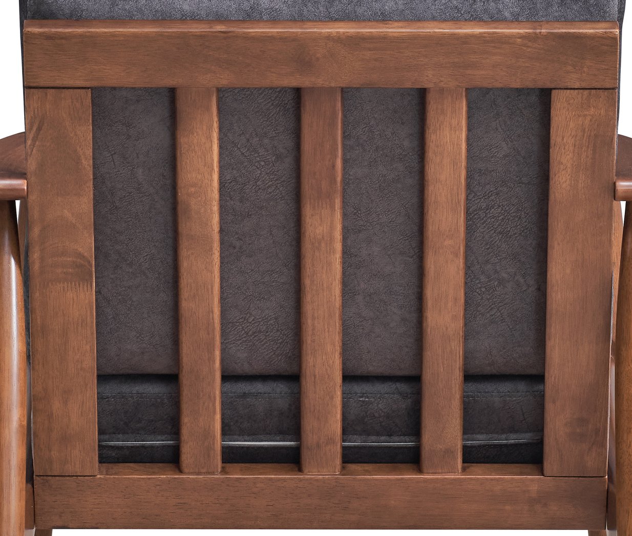 - Finish & Color: Charcoal fabric upholstery with a brown natural wood finish for a versatile, modern look