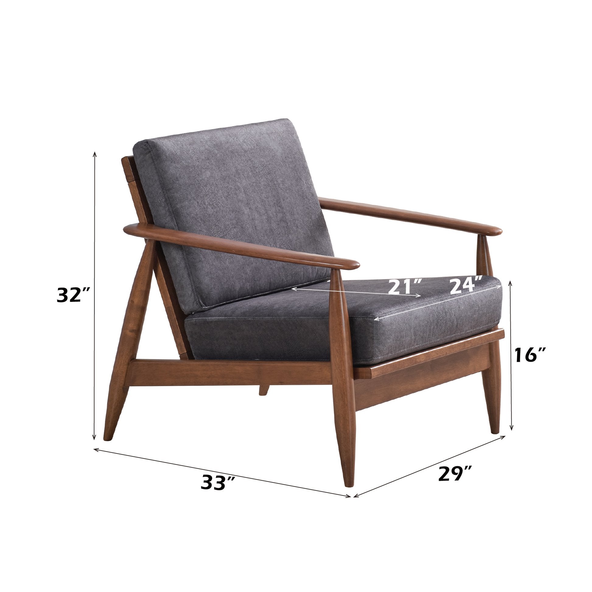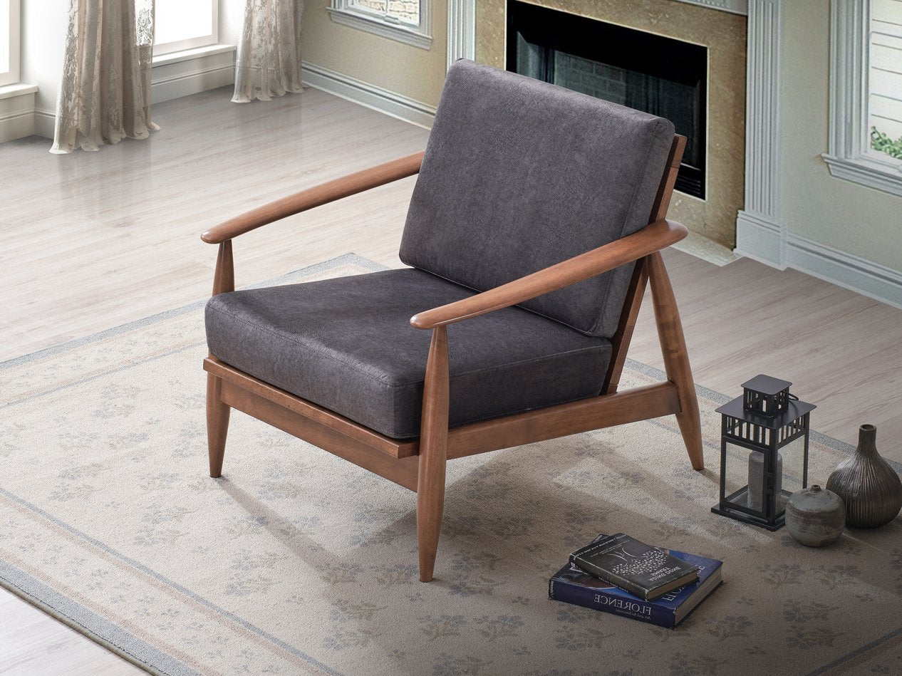 Add a touch of modern comfort to your living space with this stylish accent chair. Upholstered in soft charcoal fabric with a warm brown wood finish, the chair blends contemporary lines and cozy cushioning to create an inviting seat for reading, relaxing, or accenting a room ensemble. Solid construction and a removable cushion make it both attractive and practical for everyday use.