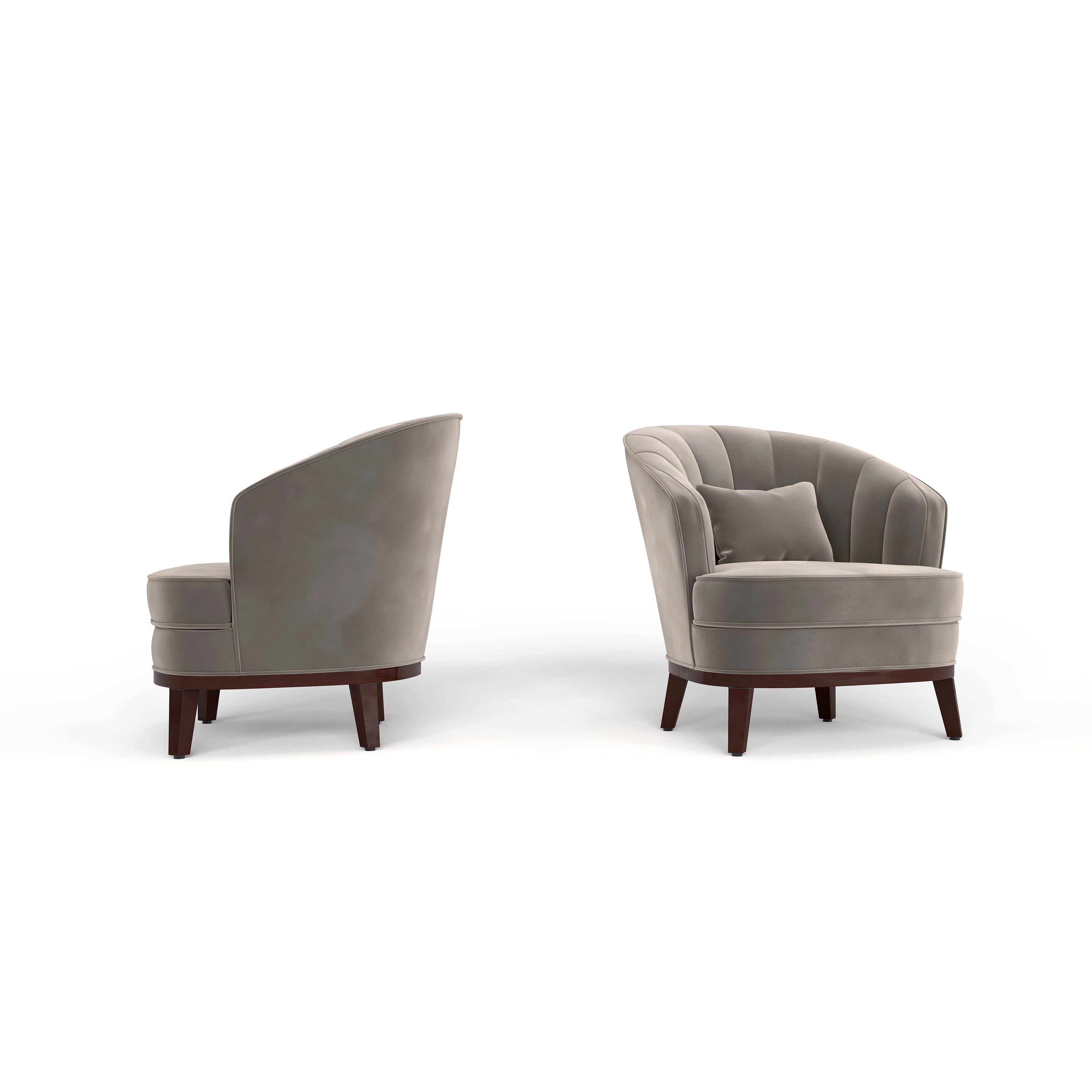 - Designed for comfort and style, this chair features a sleek barrel silhouette with elegantly curved edges and channel-tufted detailing on the backrest