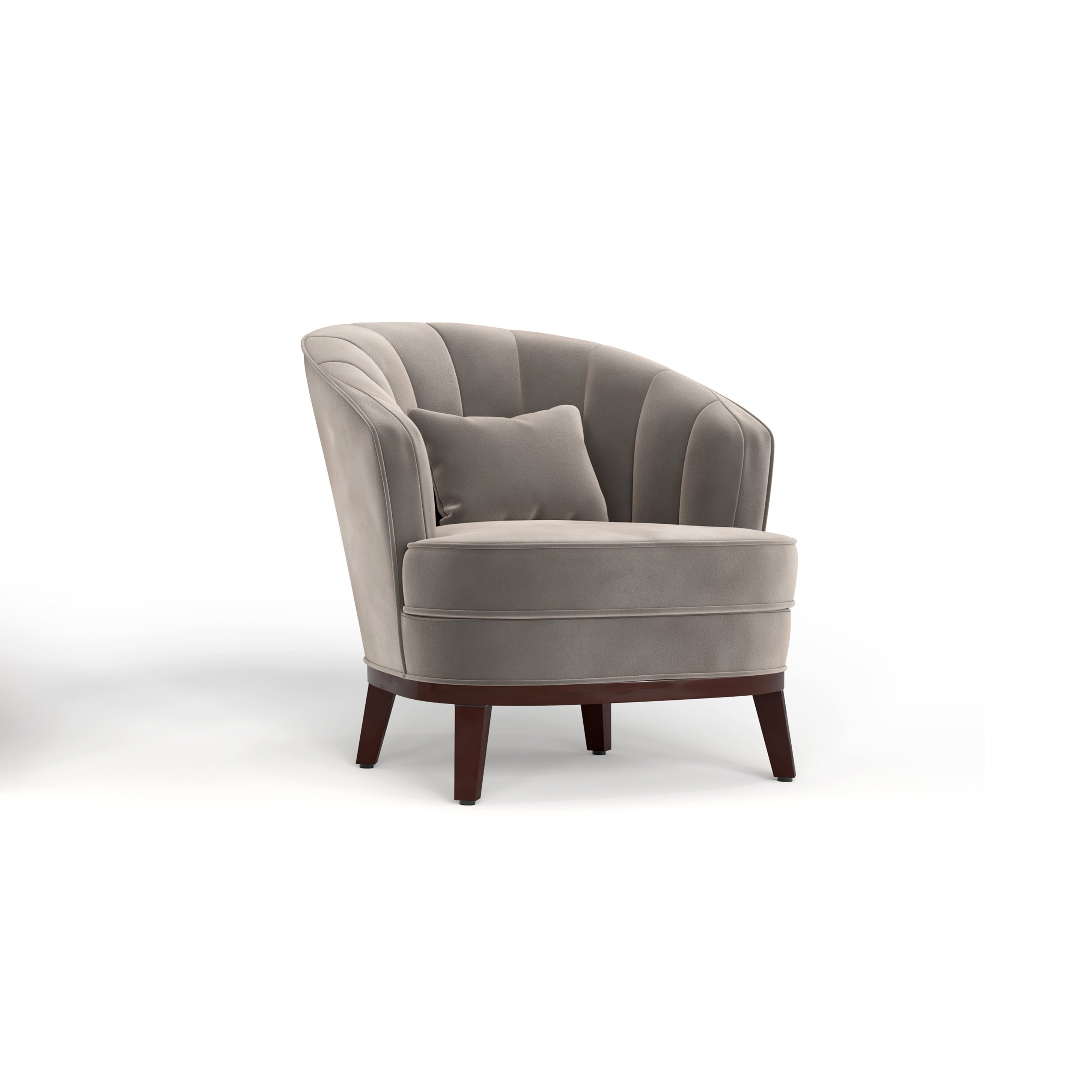 Bring modern elegance and cozy comfort to your seating area with this upholstered barrel accent chair in soft grey. Its curved silhouette and channel-tufted back create a refined focal point, while plush cushioning and a matching throw pillow invite you to relax. Ideal for living rooms, bedrooms, or reading nooks, the chair pairs sophisticated style with everyday comfort.
