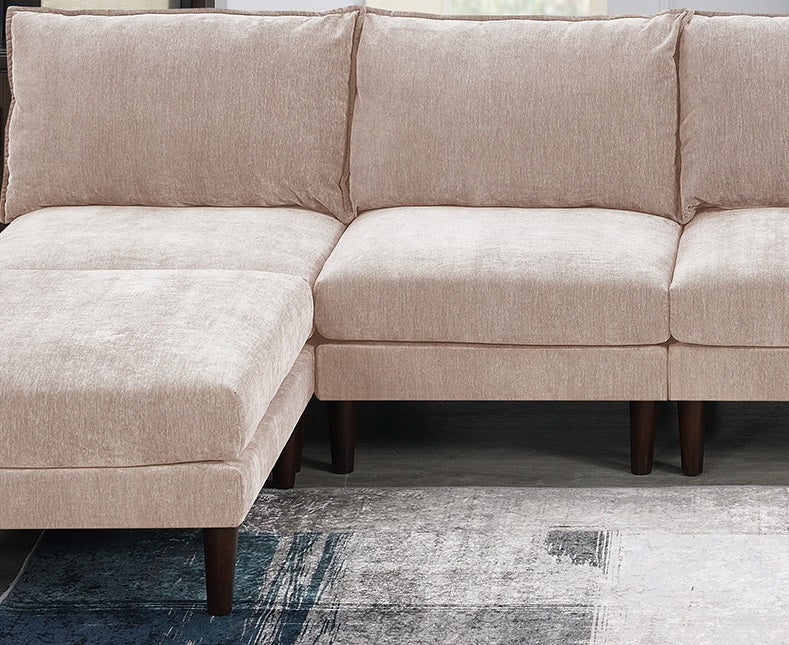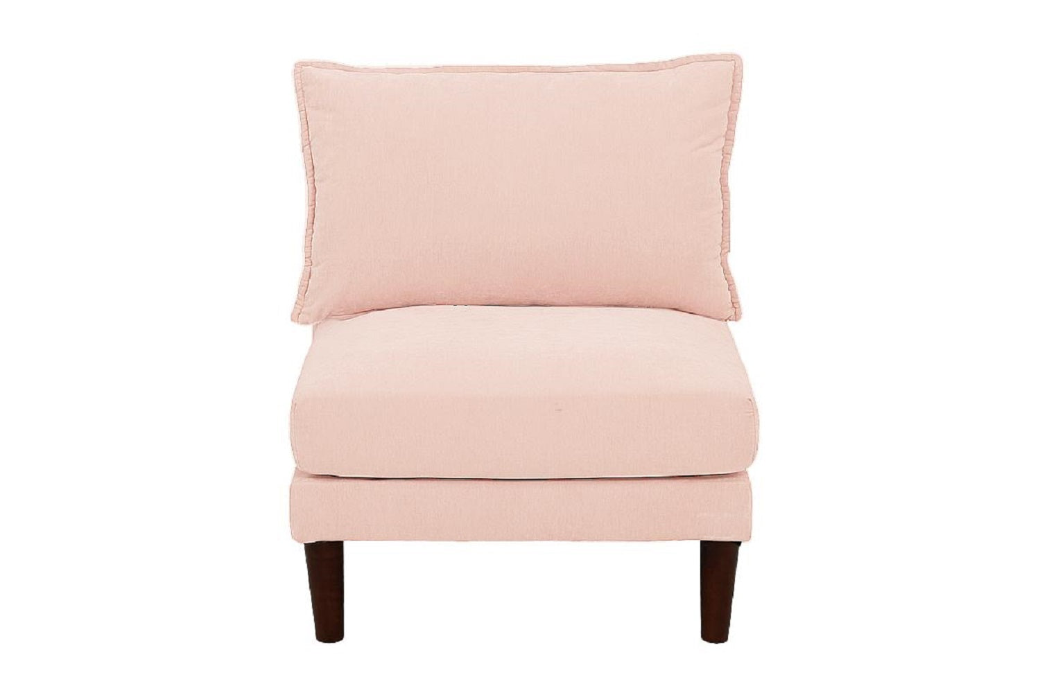 Refresh your living space with this elegant blush-pink one-arm chair — a versatile, modular accent piece that blends modern luxury with everyday comfort. Upholstered in a soft, suede-like Morgan fabric, the chair features a plush pillow-top cushion and supportive back for relaxing or entertaining. Its wood legs add warmth and stability, while the modular design lets it pair seamlessly with loveseats, sofas, ottomans (sold separately), or other armless pieces to create a customized seating arrangement.
