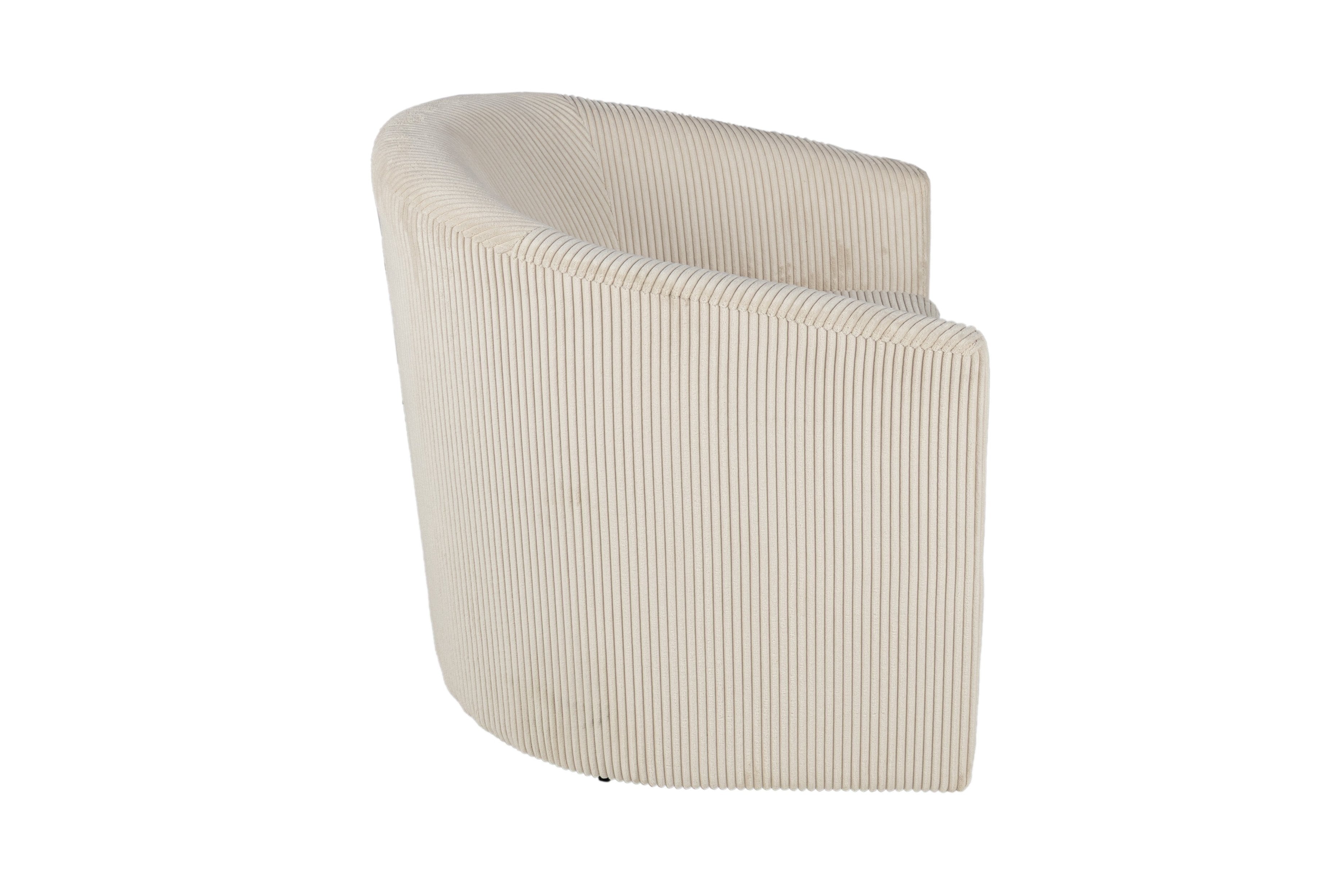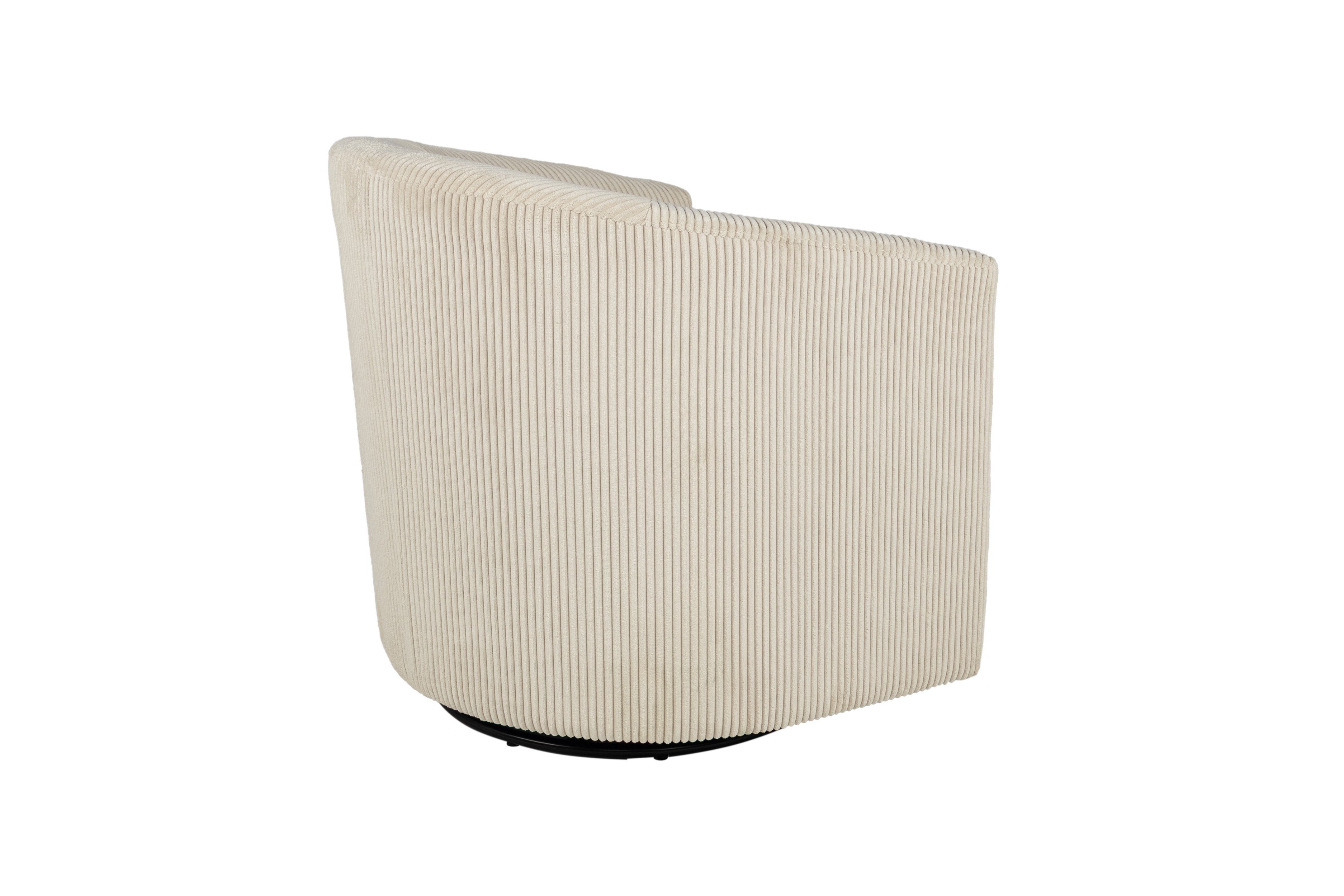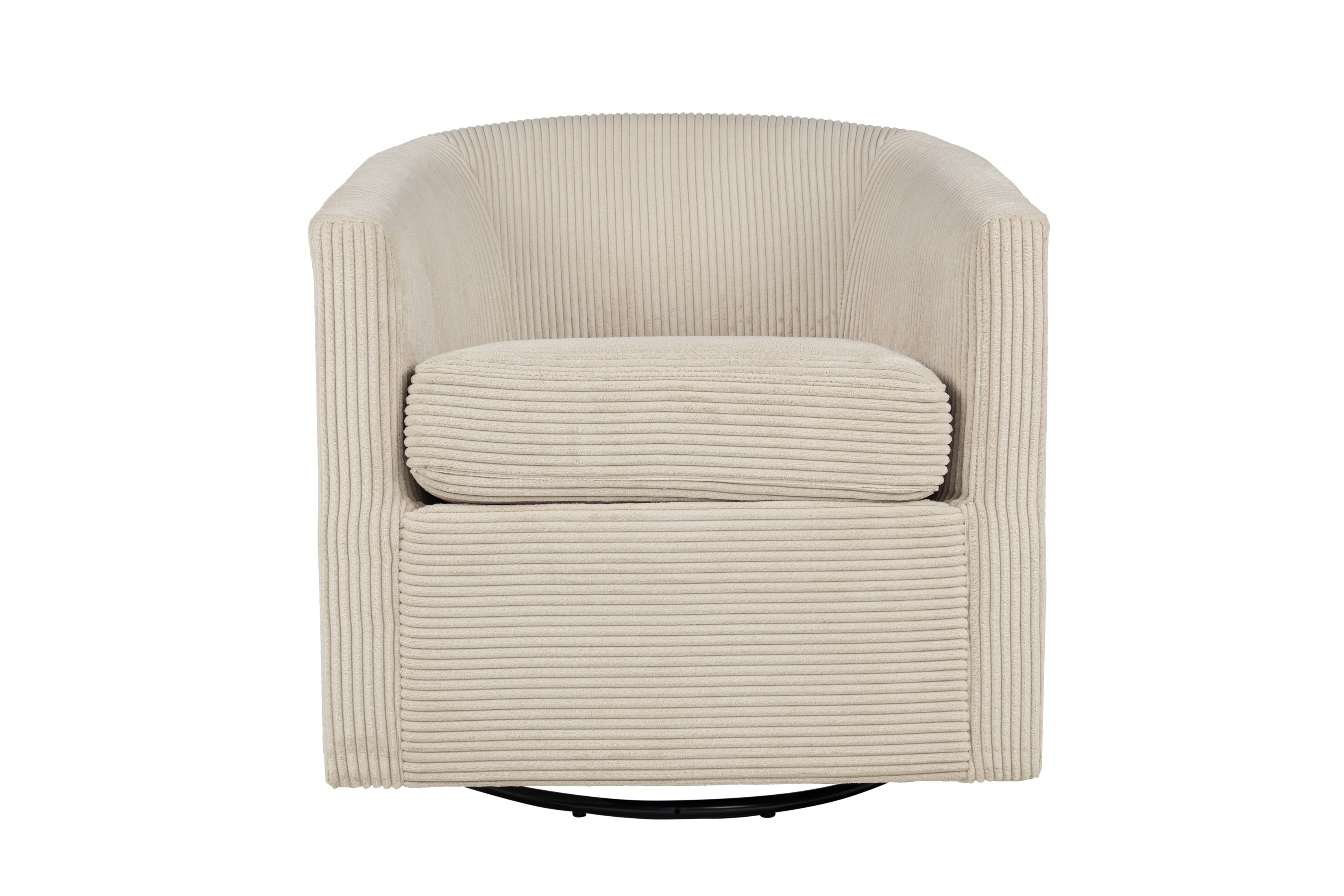 Sink into plush comfort and modern charm with this beige corduroy swivel accent chair. Its forgiving U-shaped backrest and soft, textured upholstery create an inviting spot for reading, relaxing, or entertaining, while the 360° swivel and compact footprint make it a versatile addition to living rooms, bedrooms, or cozy corners. Arrives fully assembled for immediate use — no tools required.