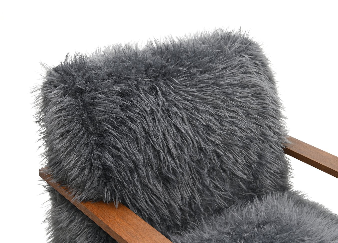 Sink into contemporary comfort with this chic charcoal gray accent chair, designed to bring cozy texture and modern lines to your primary living space. Plush faux-fur upholstery and exposed wooden arms create an inviting focal point that complements both minimalist and eclectic interiors. Ideal for reading nooks, living rooms, or as a statement piece, this chair balances softness with a sculptural silhouette.