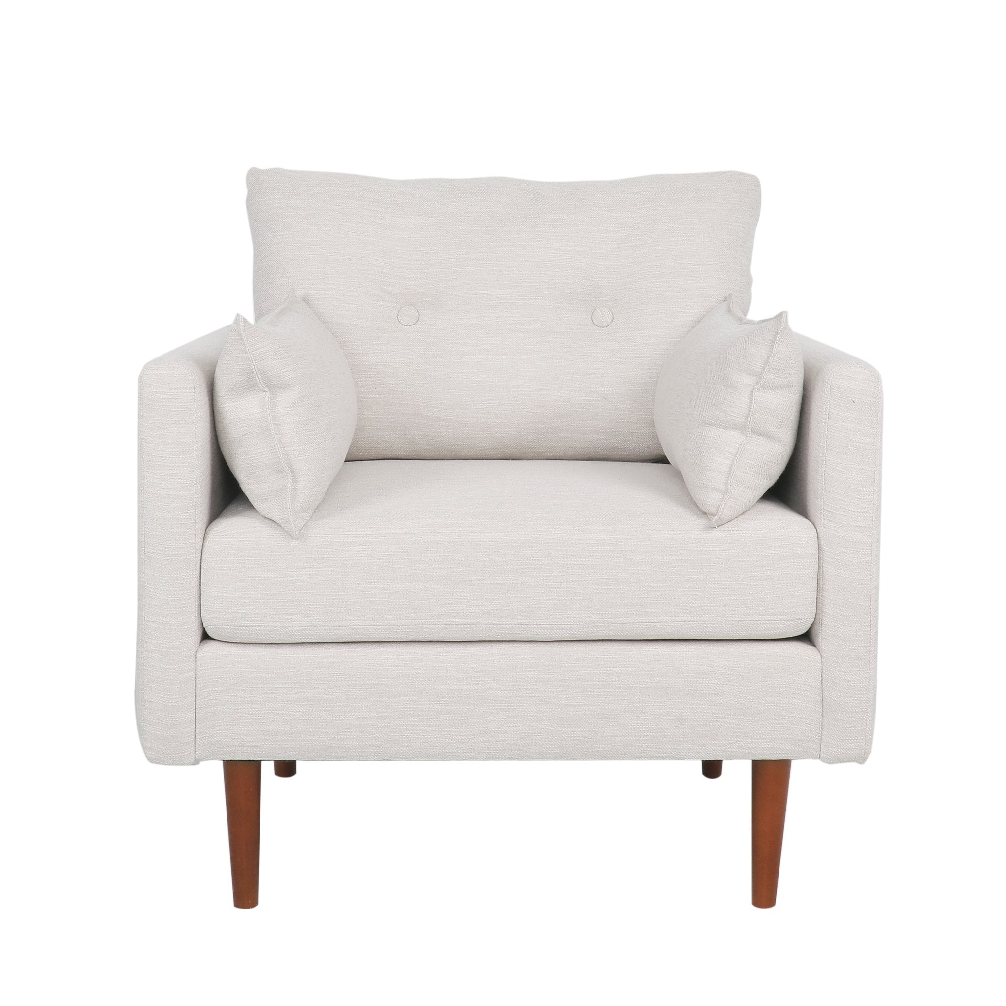 Sink into timeless comfort with a refined silhouette that elevates any living space. This beige fabric club chair combines plush cushioning, clean lines, and warm walnut-finished birch legs for a versatile accent piece that works equally well in cozy reading nooks or modern living rooms.