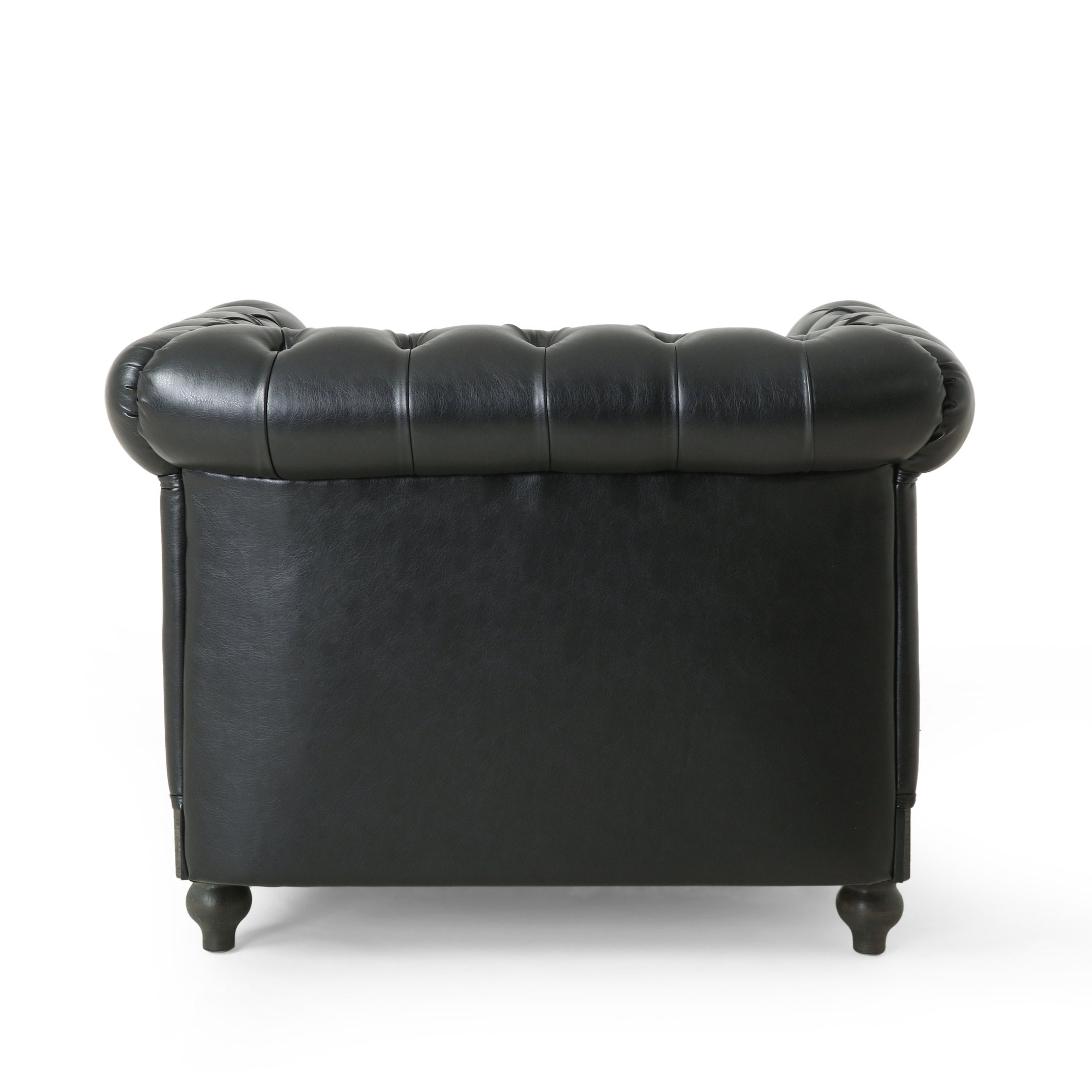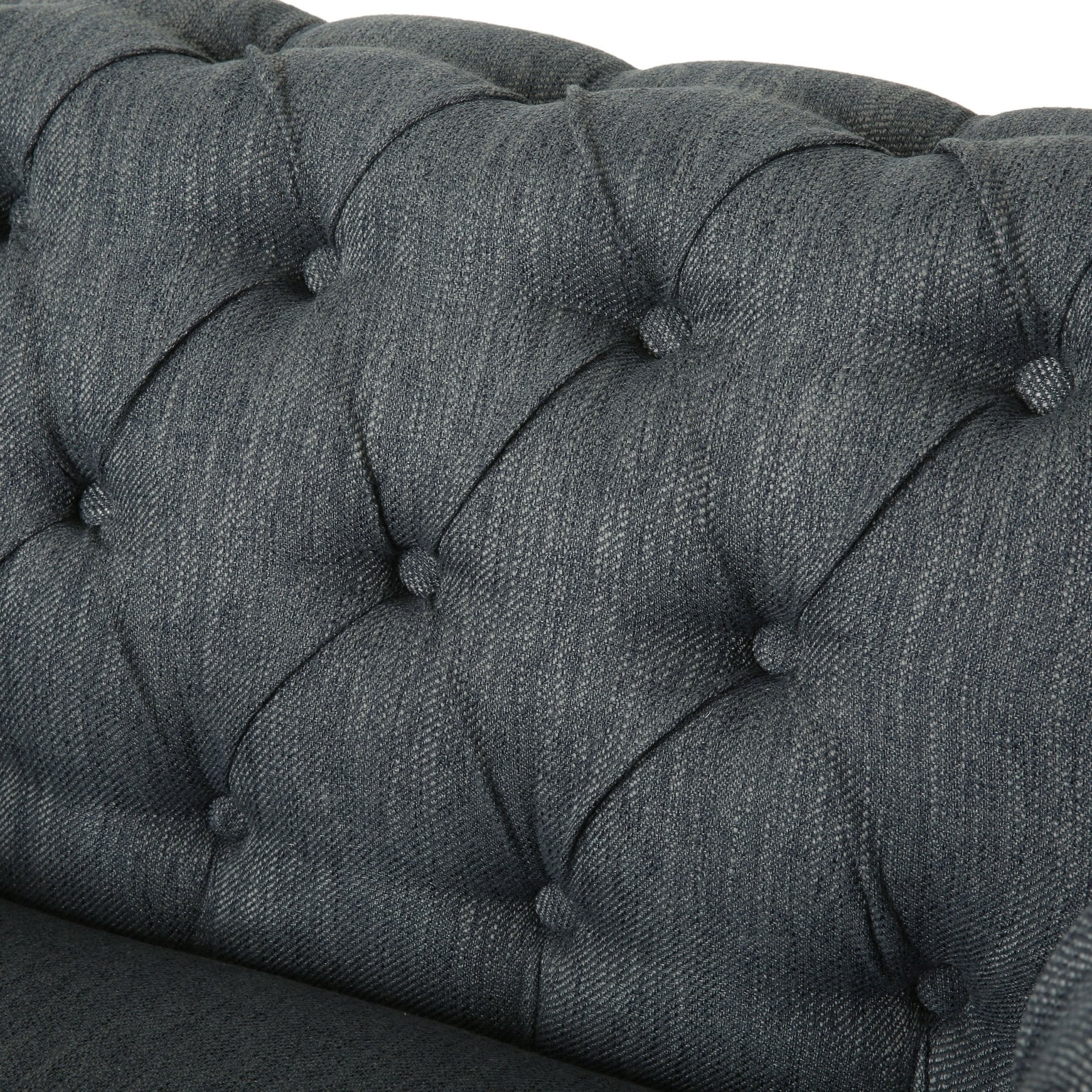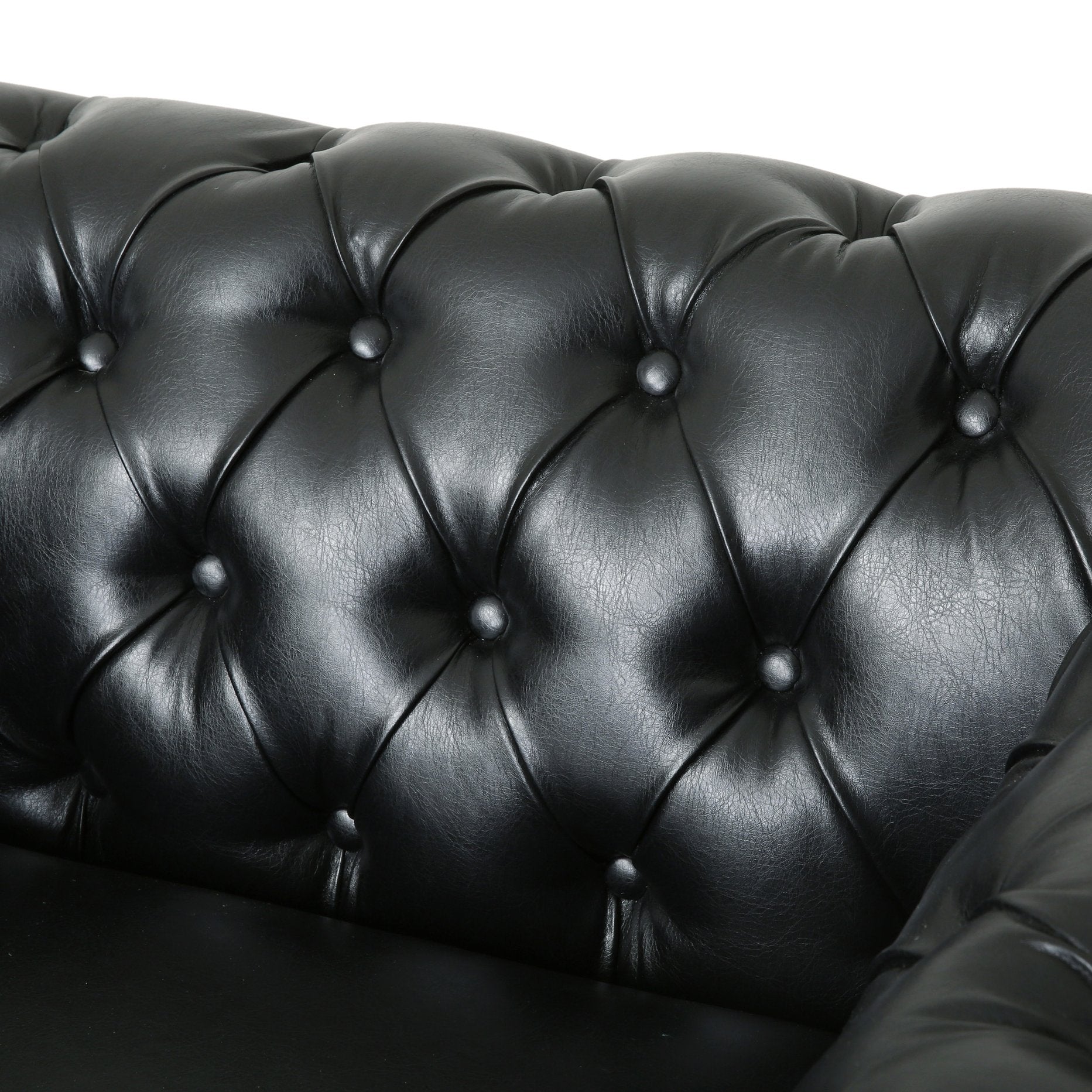 - Key features: Traditional Chesterfield-inspired silhouette with deep button tufting, decorative nailhead accents, scrolled tuxedo arms, and turned wood-style legs for an authentic vintage look.