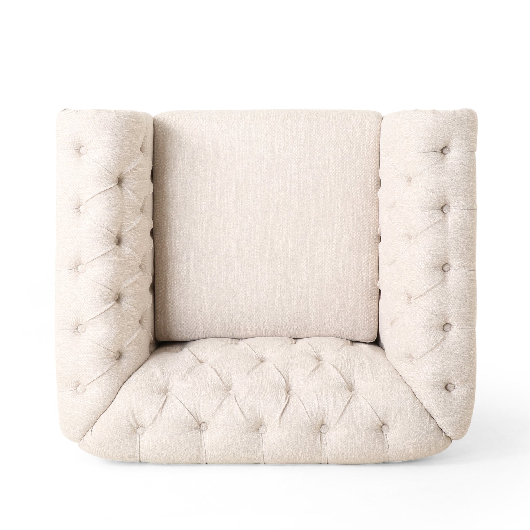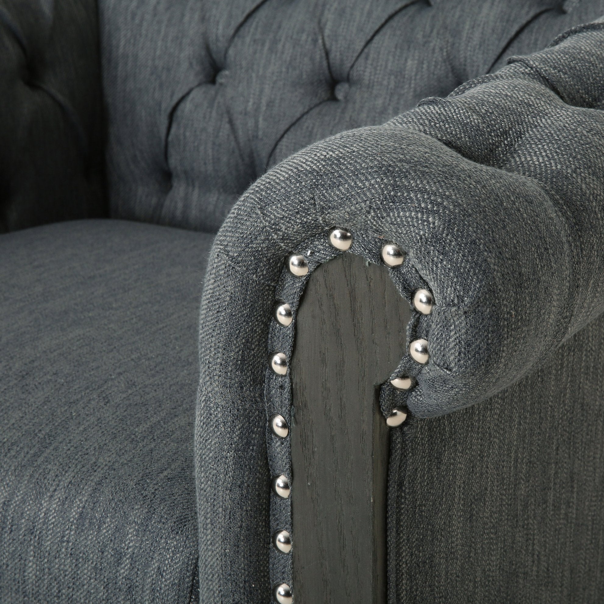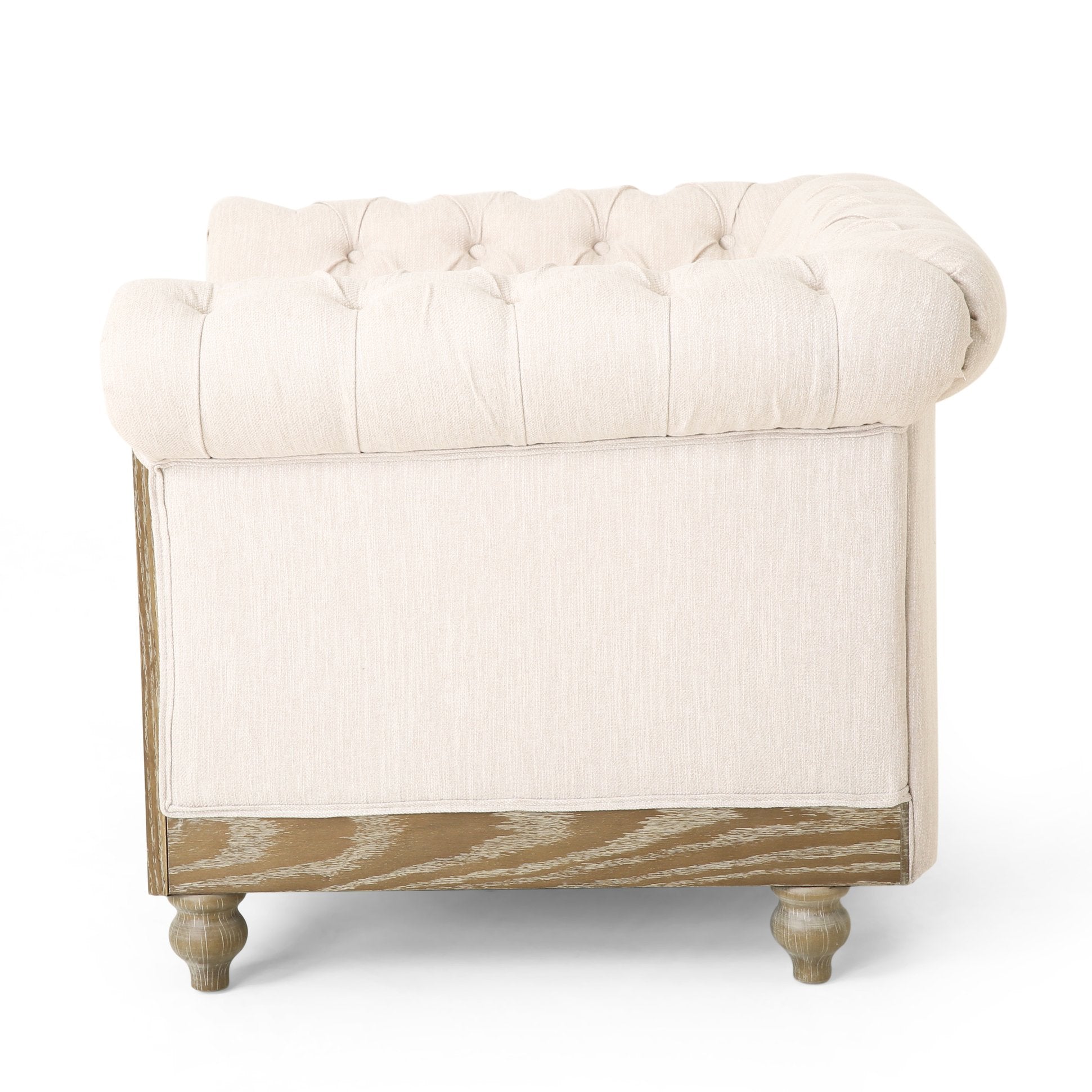 - Key features: Traditional Chesterfield-inspired silhouette with deep button tufting, decorative nailhead accents, scrolled tuxedo arms, and turned wood-style legs for an authentic vintage look.