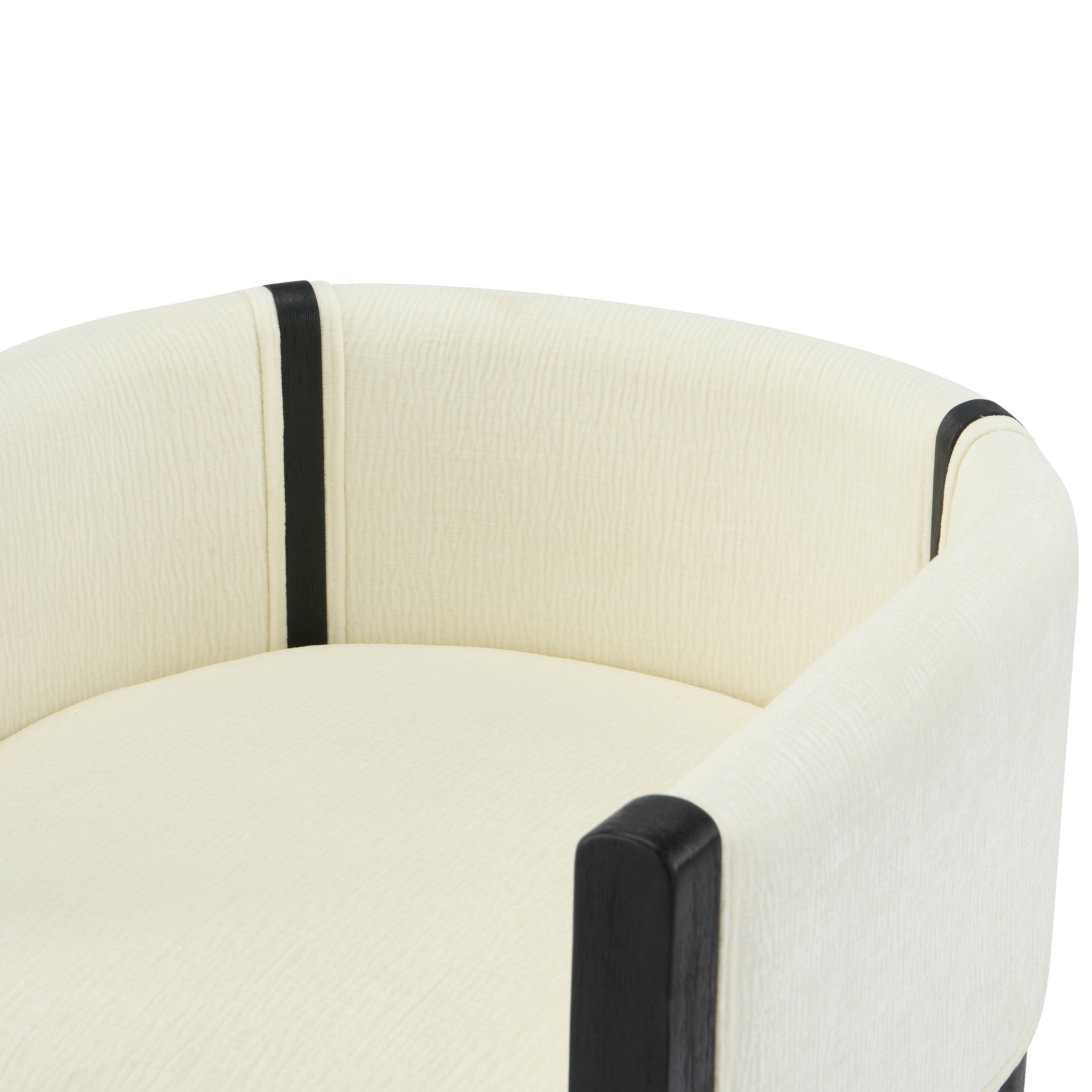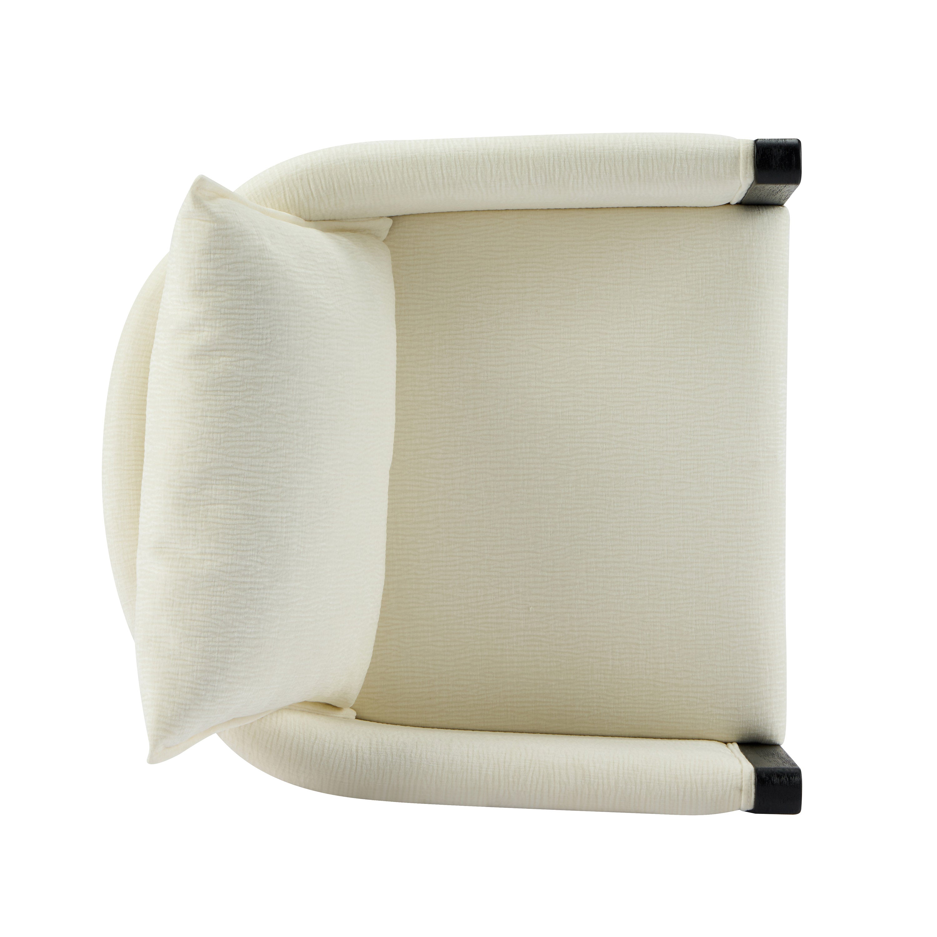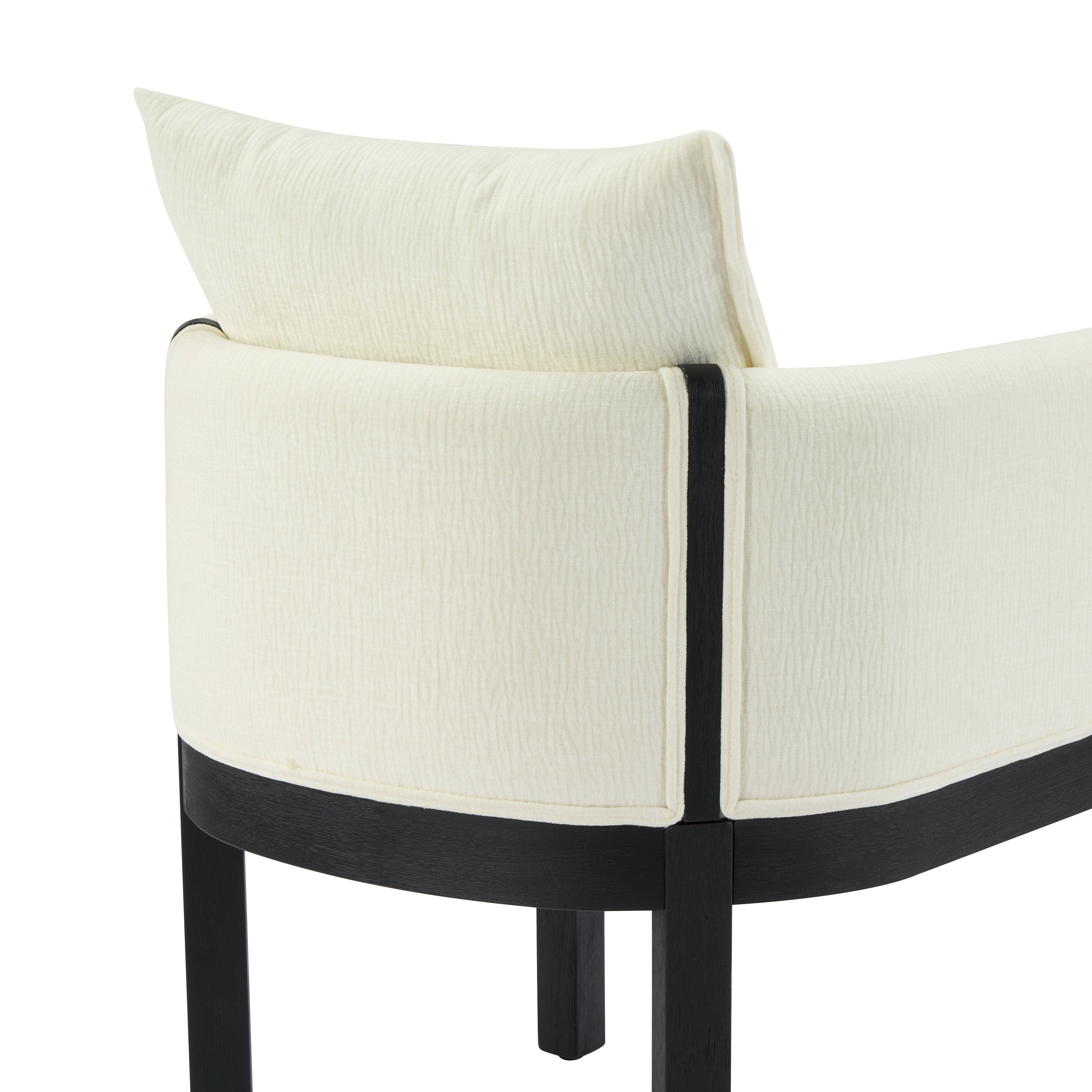 This elegant set of two linen-upholstered armchairs pairs clean, modern lines with comfortable seating and durable construction, making them ideal for dining rooms, home offices, or as stylish accent chairs in compact living spaces. The neutral white fabric and black rubber wood legs create a striking yet versatile contrast that complements minimalist and contemporary interiors.