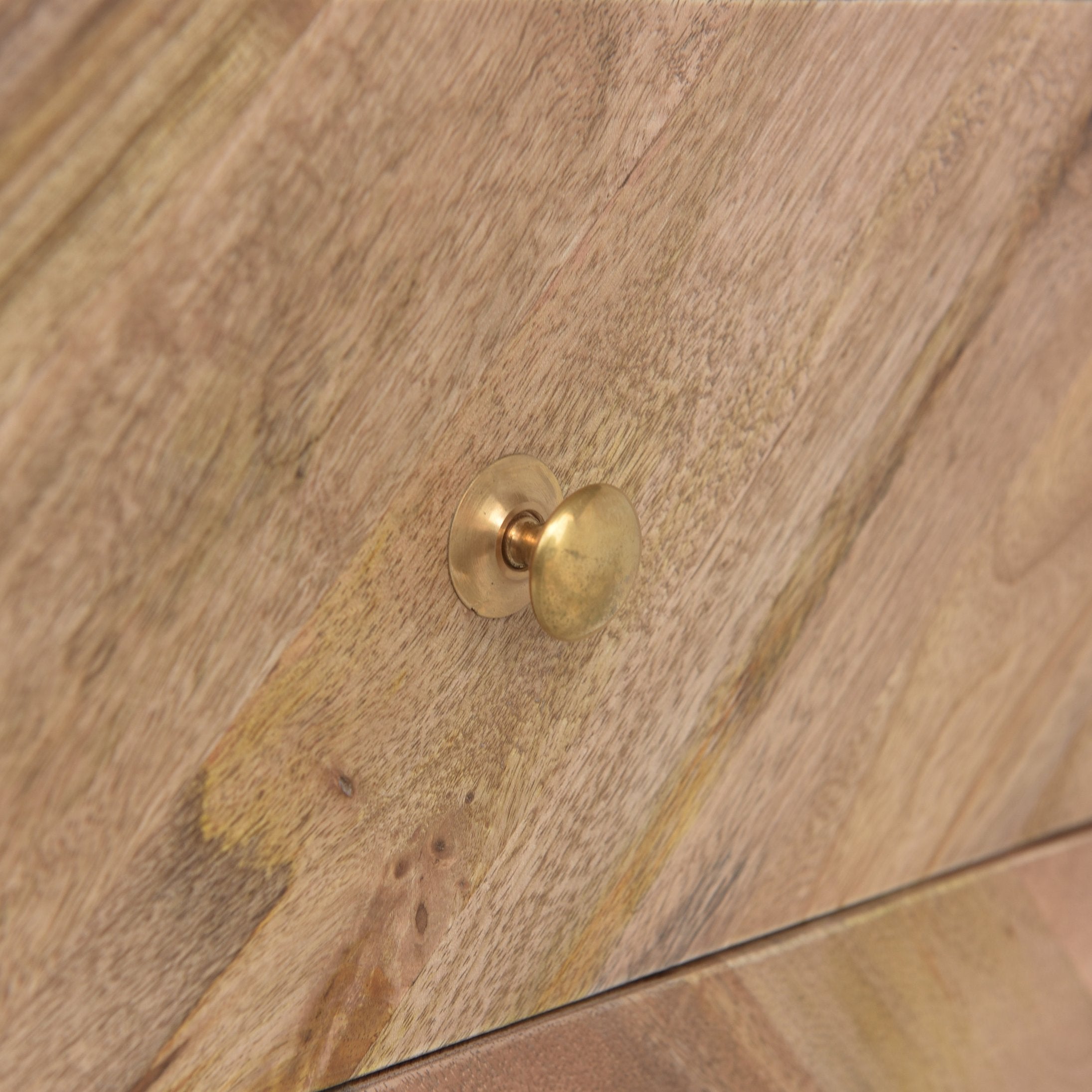 Add natural warmth and effortless style to any room with this handcrafted two-drawer accent cabinet. Combining mango wood details with an MDF frame and splayed legs, it delivers a mid-century modern silhouette with boho charm and practical storage—perfect as a bedside companion or living-room side table.