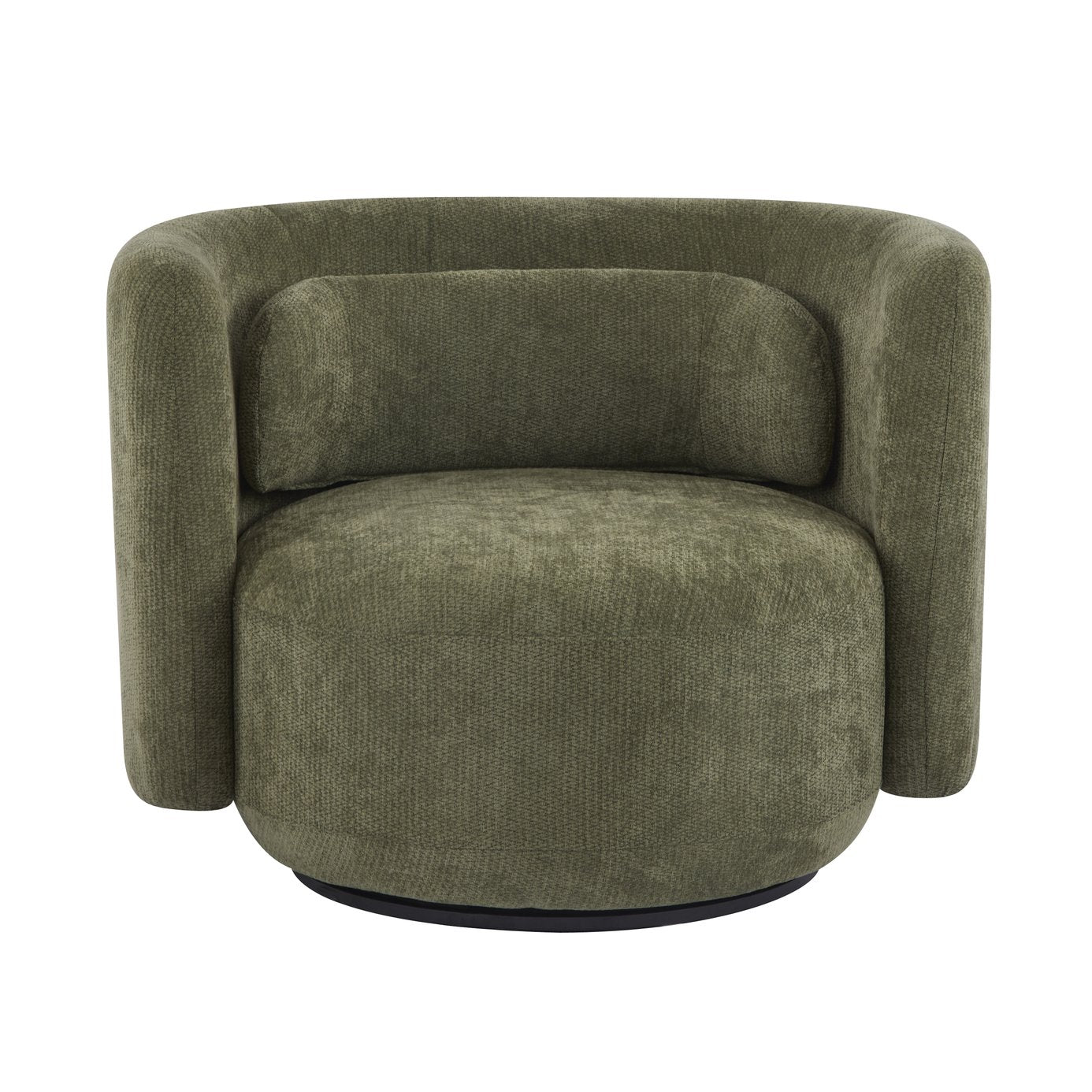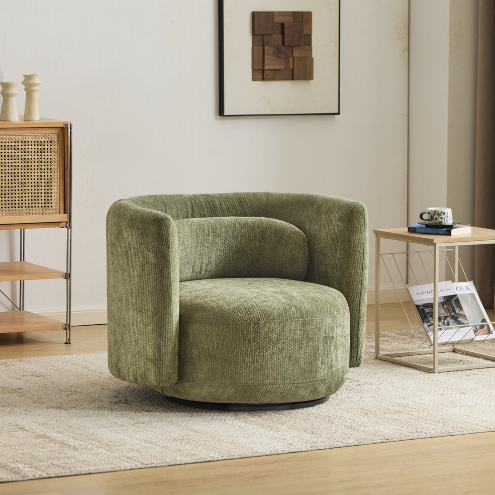 Add a stylish and versatile focal point to your room with this swivel accent armchair. Upholstered in plush green fabric and designed with a sleek round silhouette and sloping armrests, the chair combines modern elegance with everyday comfort—ideal for living rooms, home offices, or cozy reading nooks. Its full-rotation swivel base lets you change your view or join conversations with ease, while supportive construction and a lumbar pillow ensure long-lasting comfort.