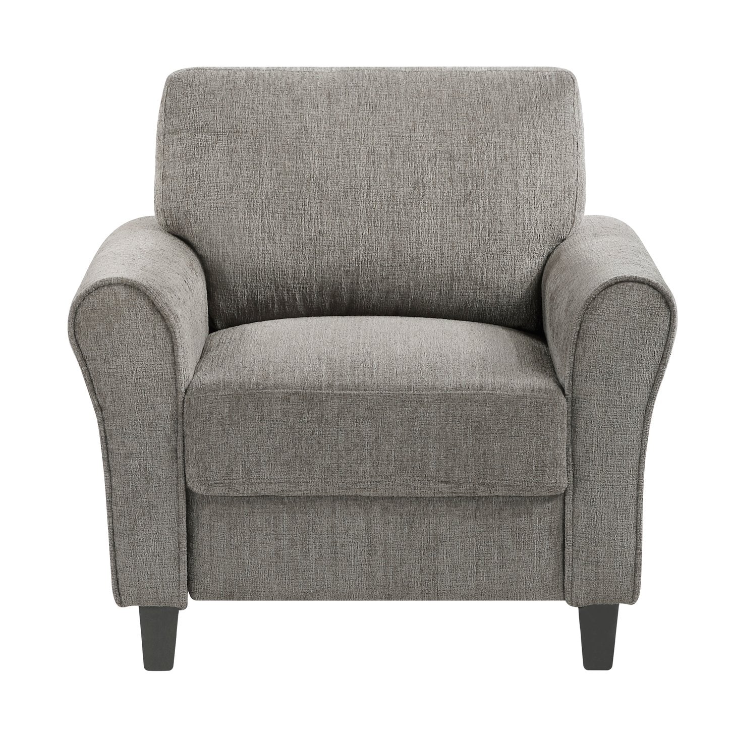 - Elegant Details: Classic rolled arms and exposed feet with a sleek black faux wood finish for a polished look.