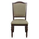 Bring classic sophistication to your dining room or living space with this pair of Dark Cherry Finish Armchairs. Upholstered in a neutral-tone fabric with a cushioned seat and back, these chairs combine comfort with traditional design elements—turned front legs, nailhead trim, and sculpted wooden armrests—for a refined, coordinated look that complements a range of interiors.