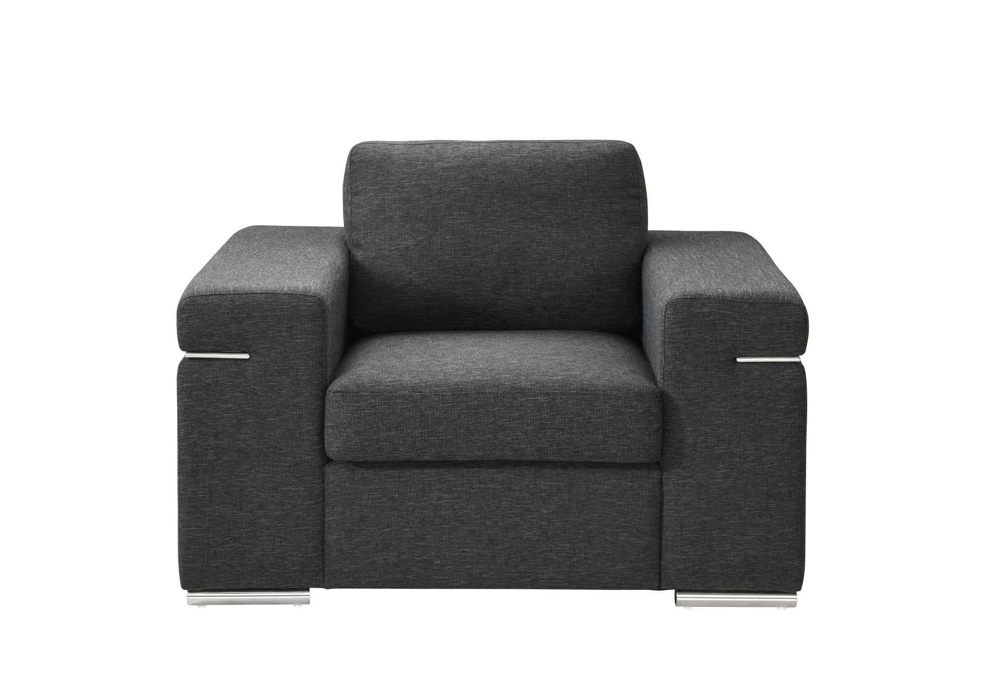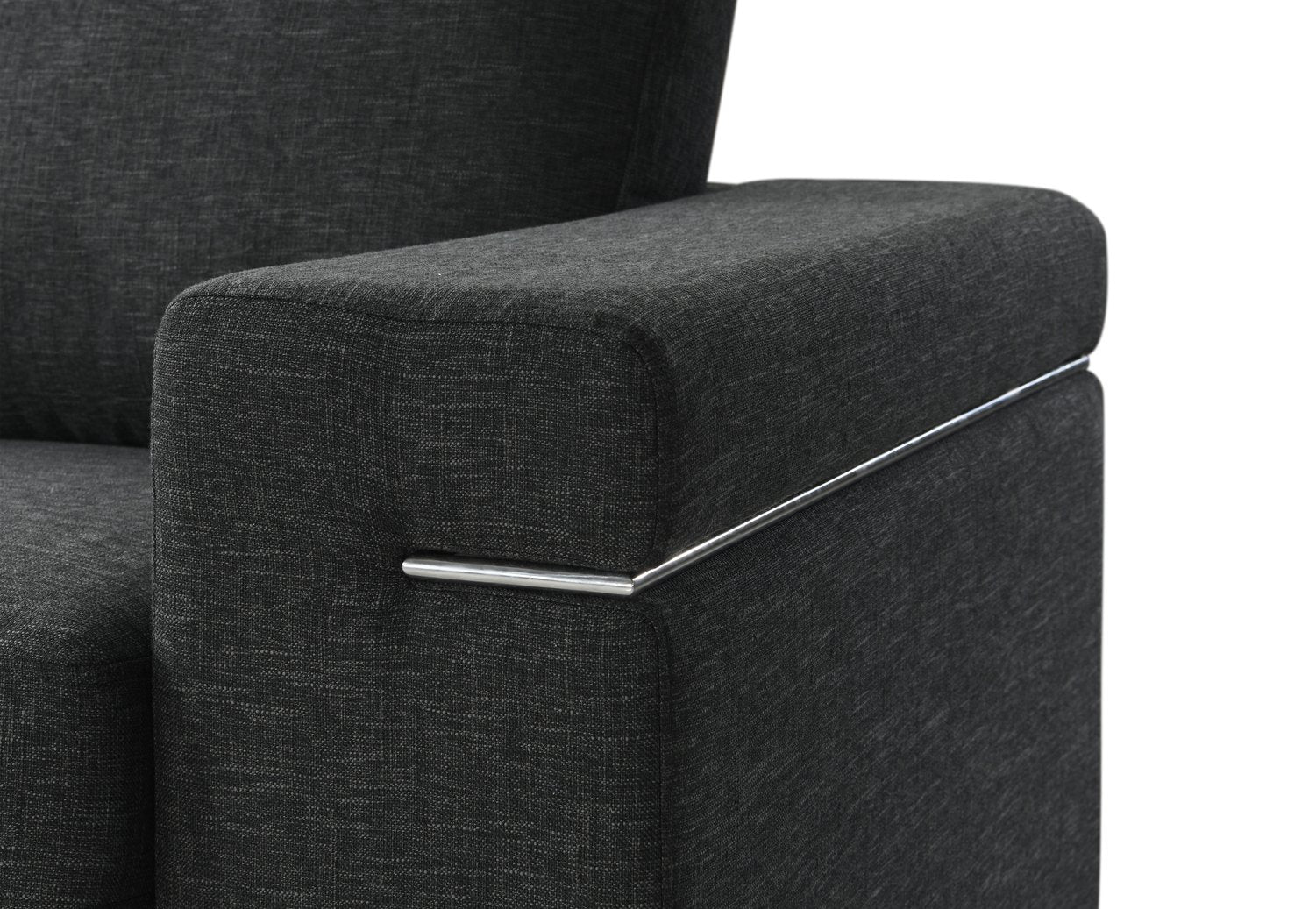 - Design accents: Oversized arms with chrome metal inserts and matching chrome legs for a modern, polished look