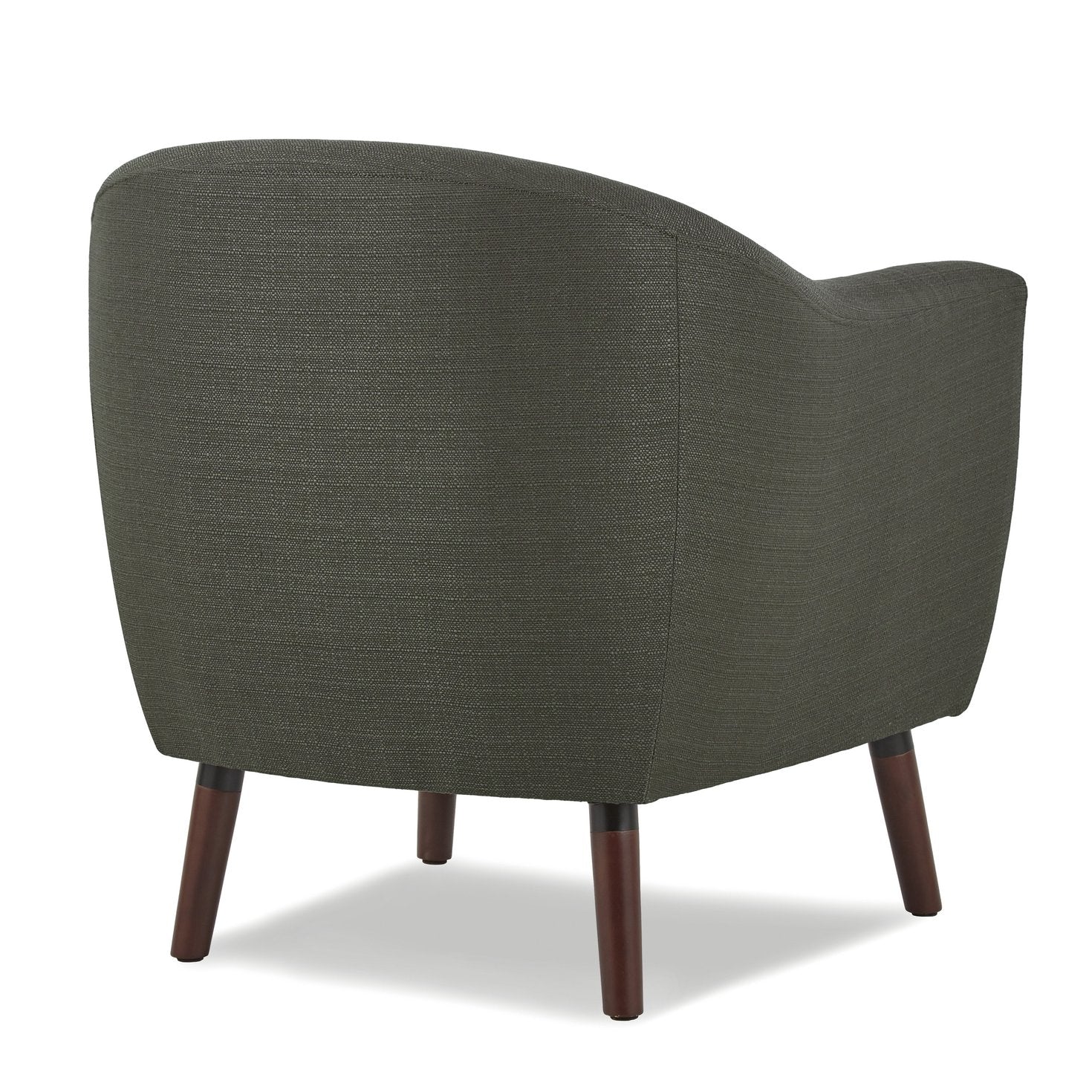 Bring mid-century charm into your living space with this gray fabric upholstered accent chair. Elegant button-tufted detailing, a contoured back, and espresso/cherry-finished solid wood legs combine for a timeless, versatile piece that complements both modern and classic interiors. Ideal for a living room, bedroom, or reading nook, this chair balances comfort and style while offering durable construction and easy assembly.