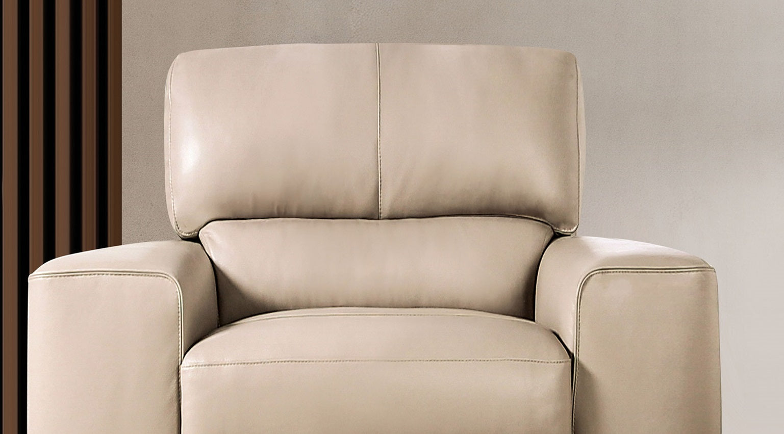 - Material & Finish: Real Italian leather upholstery in a versatile taupe finish that develops character over time.