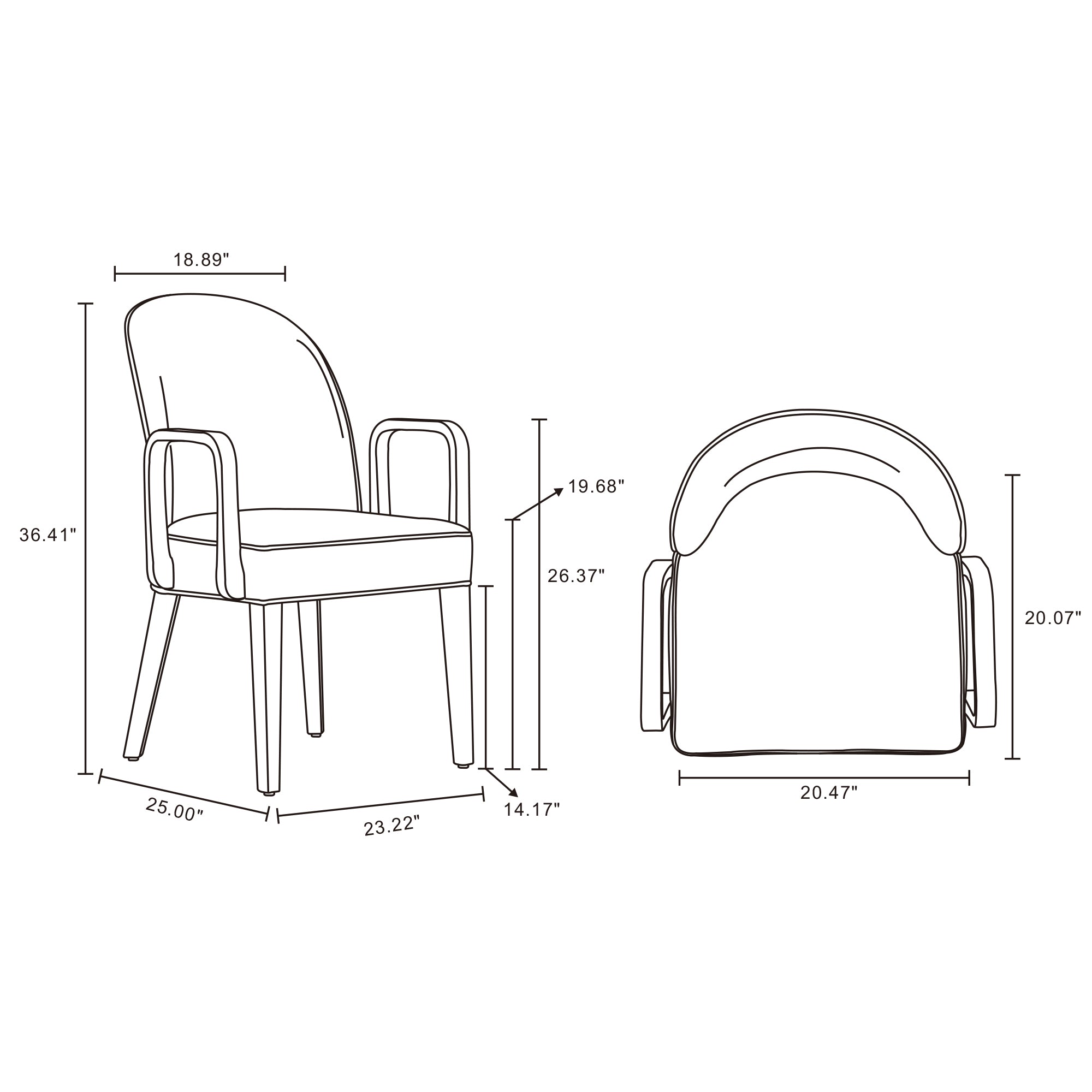 - Armchair Dimensions Measure: 23.22 in. Length, 36.41 in. Height, 25 in. Depth.