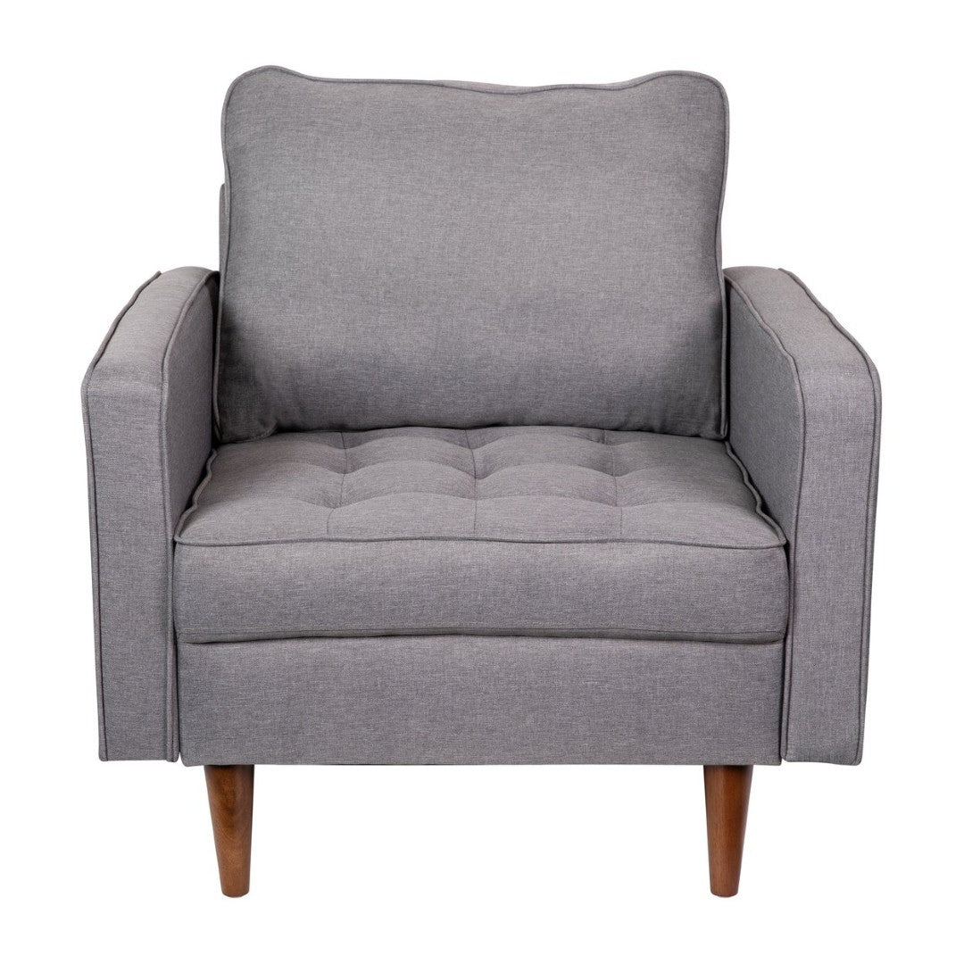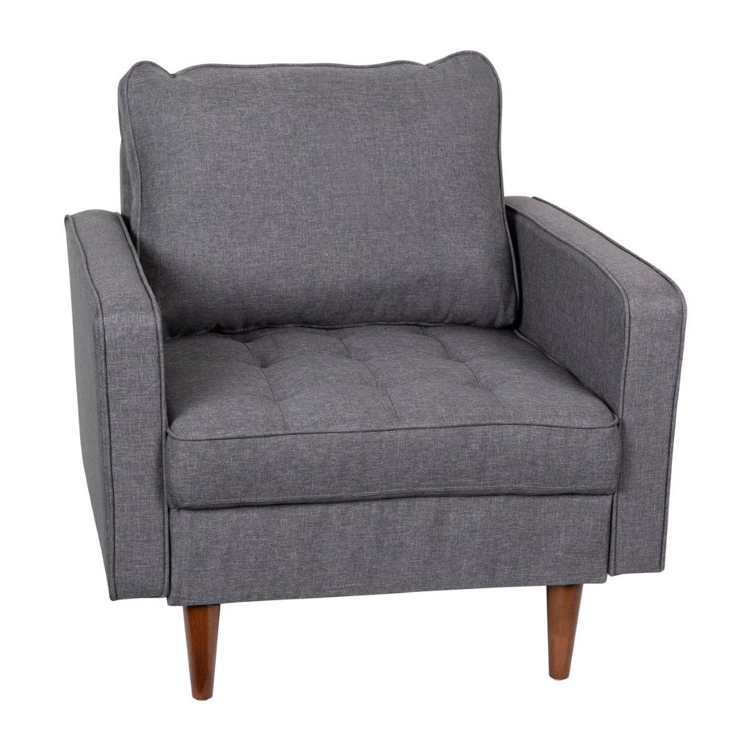 - Dark Gray Faux Linen Fabric Upholstery and Buttonless Tufted Seat Cushion