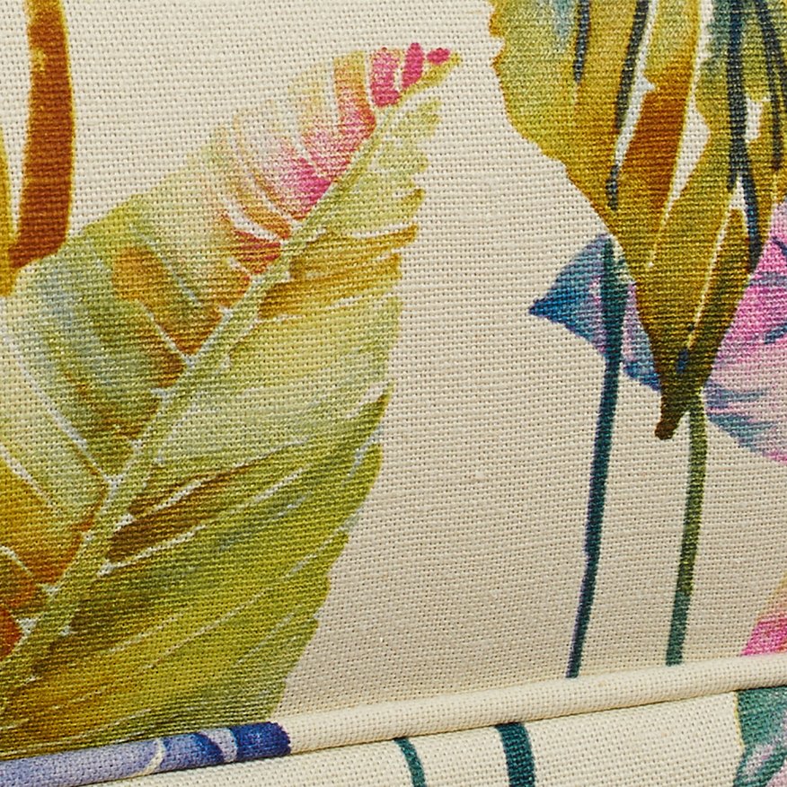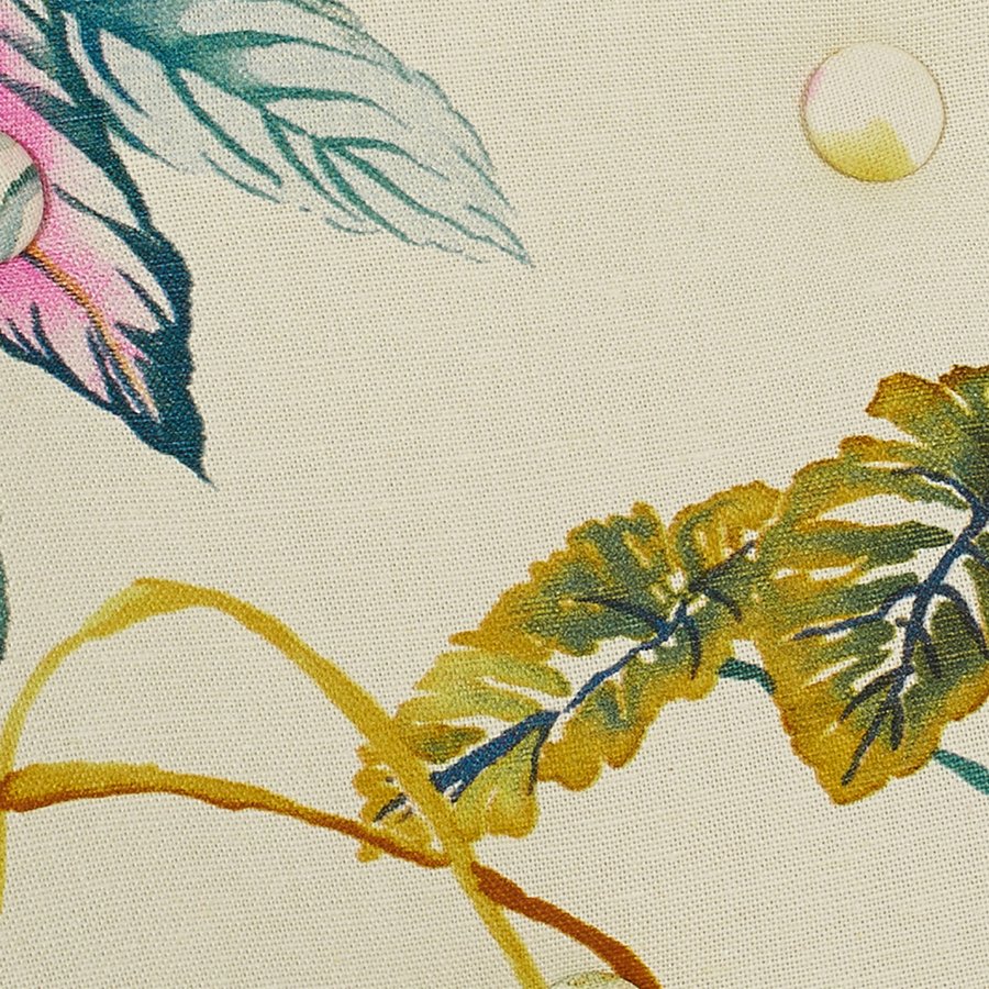 - Upholstery: Off-white/beige floral printed cotton fabric — finely woven for a soft hand and an inviting look