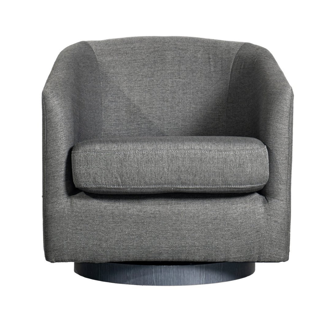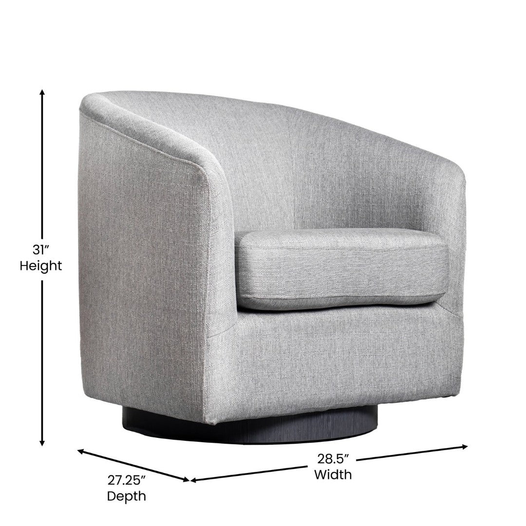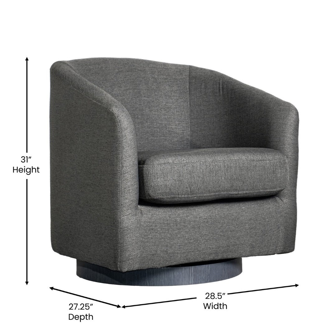 Bring a touch of classic club styling and modern convenience to your lobby, lounge, office, or home with this commercial-grade barrel accent armchair. Upholstered in soft, durable dark gray fabric and built on a sturdy metal swivel base, it blends comfort, endurance, and easy maintenance—ideal for hospitality settings, waiting areas, and high-traffic residential spaces.