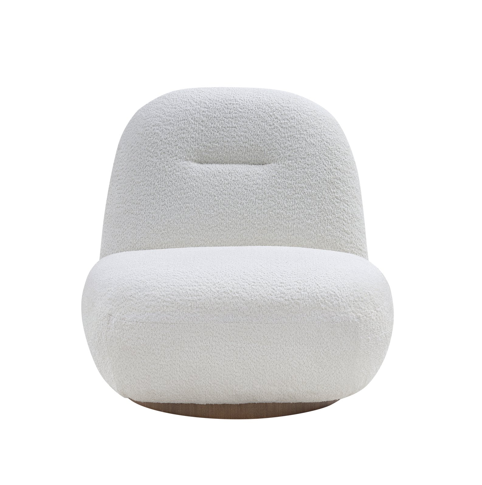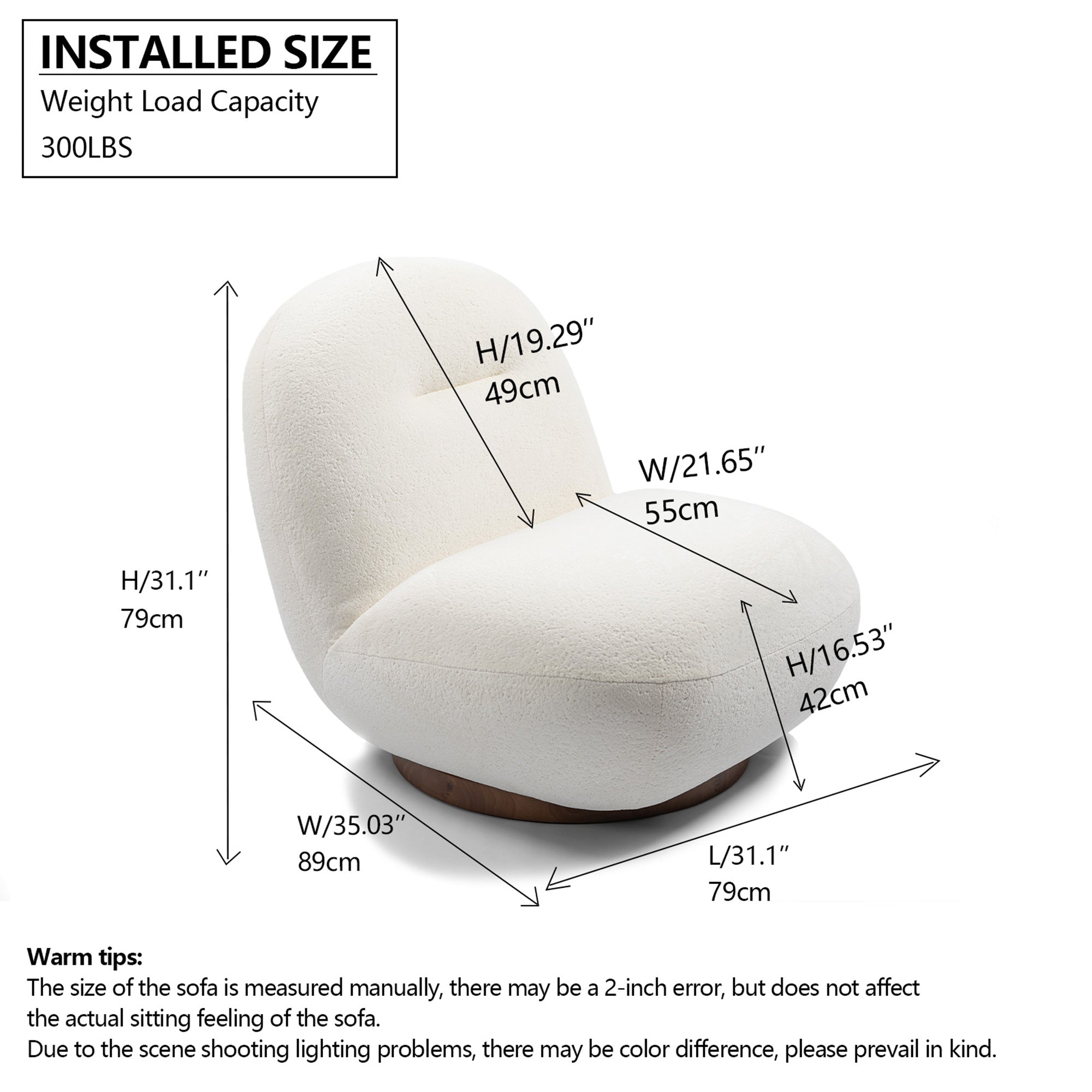 Elevate your living space with this larger luxury modern swivel accent chair — a minimalist, cloud-like seat that combines sculptural style with everyday comfort. Wrapped in soft white boucle and built on a sturdy solid-wood frame, this armless rotating chair makes a striking statement in living rooms, apartments, reception areas, or cozy reading nooks while providing roomy, ergonomic support for relaxing and entertaining.
