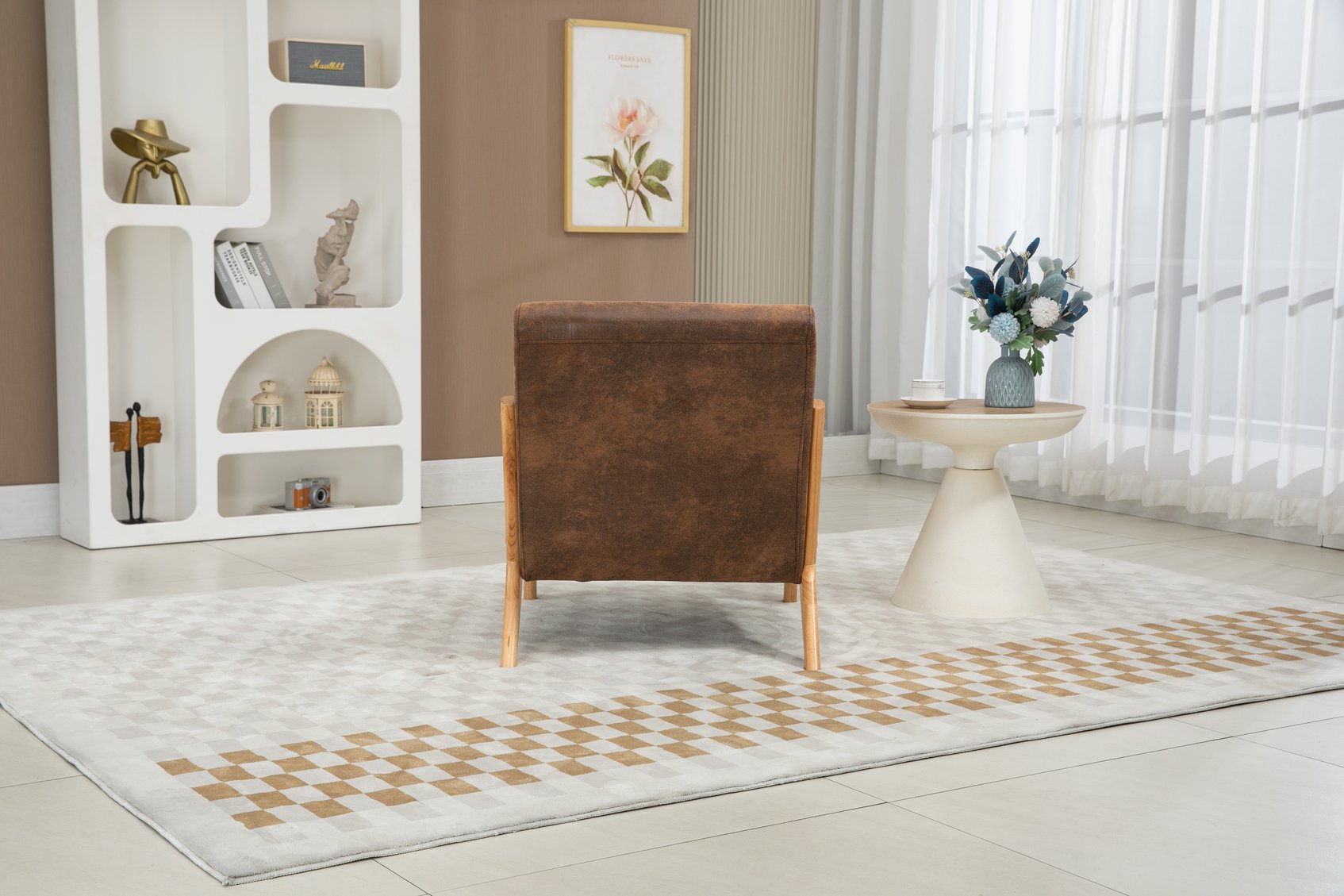Sink into serene mid-century comfort with this wood-framed accent chair — a stylish, versatile addition for living rooms, bedrooms, sunrooms or reading nooks. The chair blends a clean, vintage-inspired silhouette with modern cushioning to provide supportive, cozy seating that complements a wide range of décor styles. Durable natural wood legs and a soft fabric cover create an inviting focal point for relaxation, reading or casual conversation.