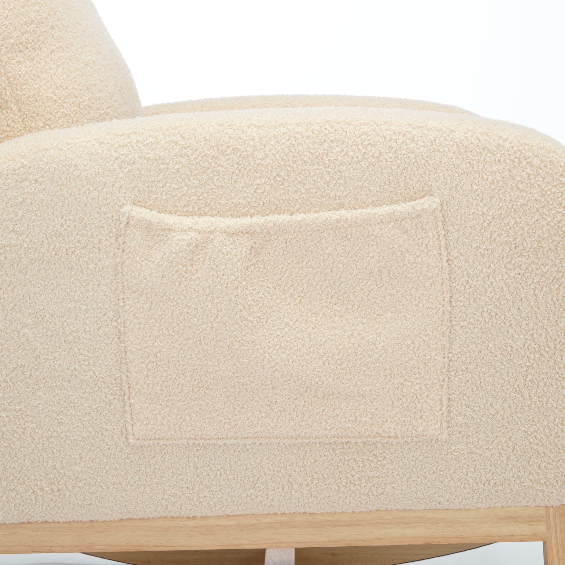 Sink into soothing comfort with this modern accent rocking chair — a stylish, versatile glider designed for nurseries, living rooms, or cozy reading nooks. Upholstered in a soft, breathable polyester blend and supported by solid wood legs, the chair combines gentle rocking motion with ergonomic support for long-lasting relaxation. Thoughtful details like a side storage pocket and non-slip foot pads make it both practical and family-friendly.