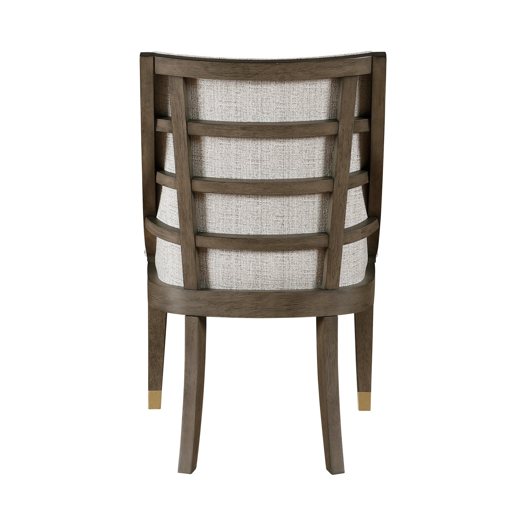 Elevate your dining or seating area with this pair of modern armchairs from the Griffin Collection—where clean contemporary lines meet refined detailing. Warm brown oak-veneer finishes and beige linen-like upholstery create a sophisticated, versatile palette, while gold-tipped metal accents lend a subtle touch of glamour. Designed for comfort and visual appeal, these semi-deconstructed wooden armchairs suit modern, transitional, and eclectic interiors.