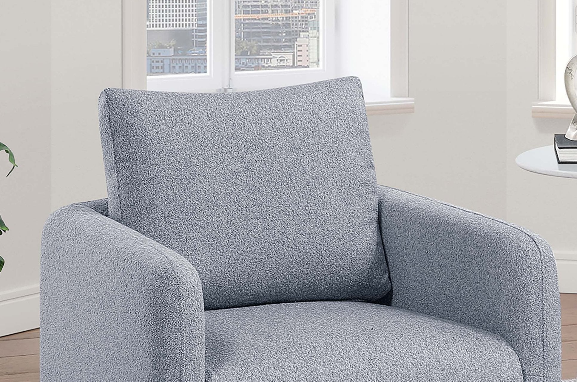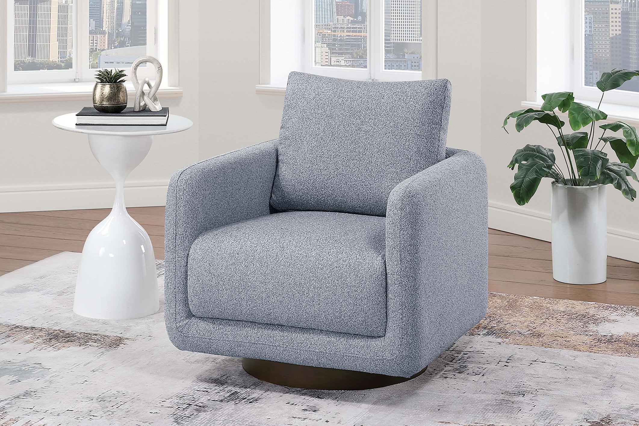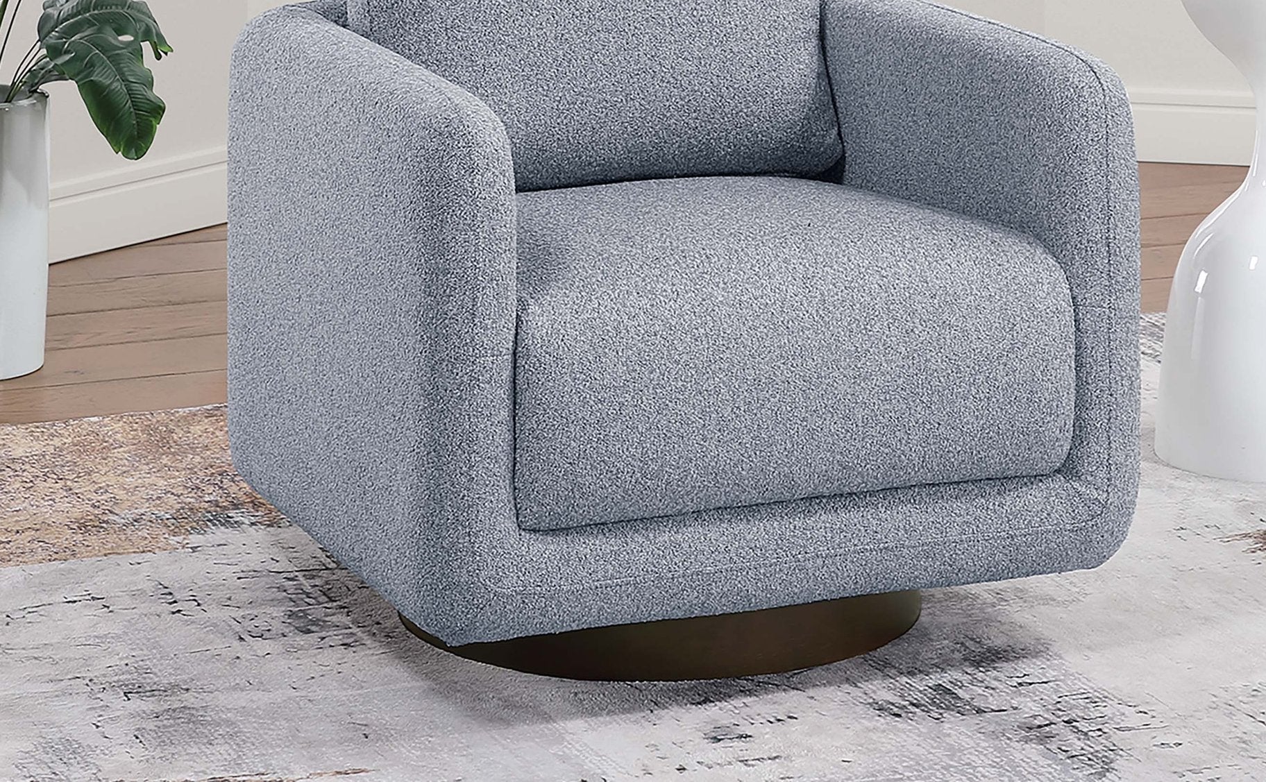 Bring contemporary comfort and sculptural style to your living space with this modern gray boucle swivel accent chair. Wrapped in soft, textured bouclé fabric and set on a full 360-degree swivel base, the chair combines cozy cushioning with effortless movement—perfect for living rooms, reading nooks, bedrooms, or open-plan seating areas. Its low-profile silhouette and integrated arms create a refined, cohesive look while the supportive back pillow and firm seat offer balanced comfort for conversation, reading, or relaxing.
