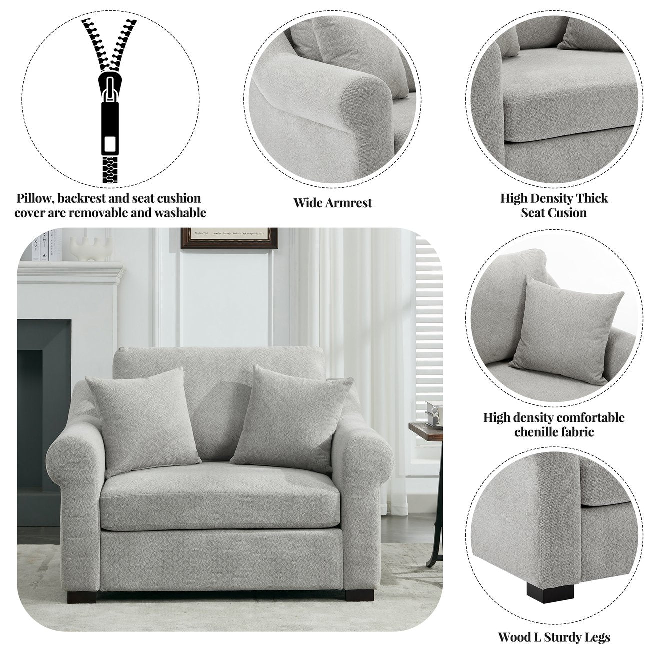 Sink into luxurious comfort with this modern oversized chenille armchair—perfect as a chair-and-a-half for your living room, bedroom, or reading nook. Designed to blend contemporary style with everyday practicality, it features plush high-density cushions, removable washable covers, and sturdy wooden L-shaped legs for long-lasting support. Whether used as a cozy solo retreat or an accent piece, this armchair delivers both comfort and refined aesthetics.