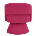 Add a bright, modern focal point to your living room, bedroom, or home office with this swivel barrel accent chair. Upholstered in plush velvet and built around a stable circular base, the chair combines comfortable ergonomic support with a smooth 360° swivel for relaxed conversation, reading, or lounging. Its open-back silhouette and clean lines give it a contemporary, airy presence that suits minimalist and eclectic interiors alike.
