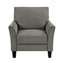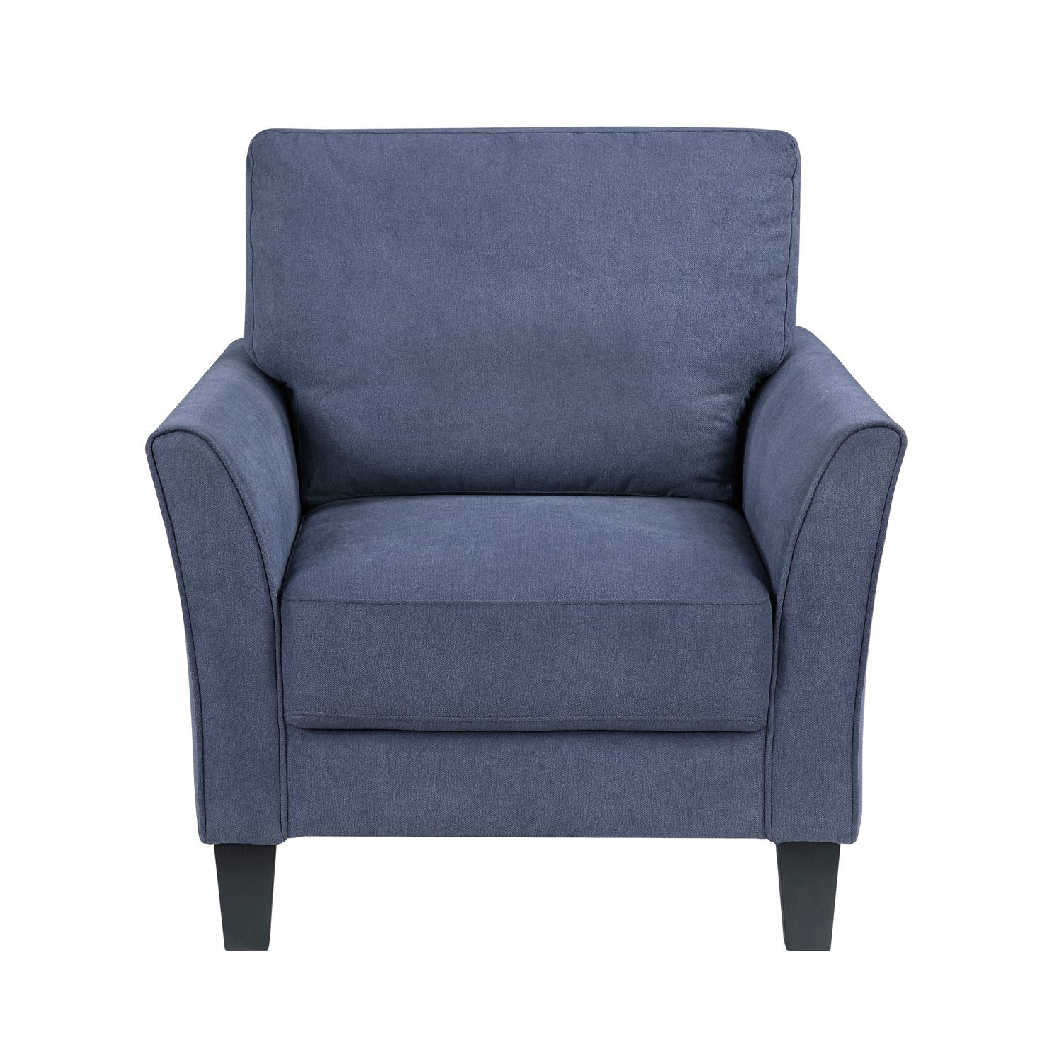 Bring modern comfort and refined style to your living space with this contemporary upholstered armchair. Its clean silhouette, gently flared arms, and plush seat create an inviting focal point that works equally well in living rooms, bedrooms, home offices, or reading nooks. Durable fabric and solid wood legs ensure everyday resilience, while the neutral blue plush upholstery adds a soft, sophisticated touch.