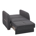 - FASHIONABLY CONVENIENT: With one swift motion, transform this Armchair into a sleeper that measures in at 74.8'' x 31.5'' or utilize the included storage compartments for your very own storage needs. ASSEMBLY made easy in 30 minutes or less! DISCLAIMER: ITEMS IN IMAGES SOLD SEPARATELY