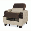 Enjoy everyday comfort and flexible functionality with the Marabella convertible upholstered armchair. Thoughtfully designed for smaller spaces, this stylish piece blends clean-lined upholstery, firm microfiber seating, and built-in storage to serve as a comfortable chair by day and a convenient sleeper by night. Crafted for durability and easy maintenance, it’s an ideal addition to studio apartments, dorms, guest rooms, or living rooms that need multi-purpose furniture without bulky footprint.