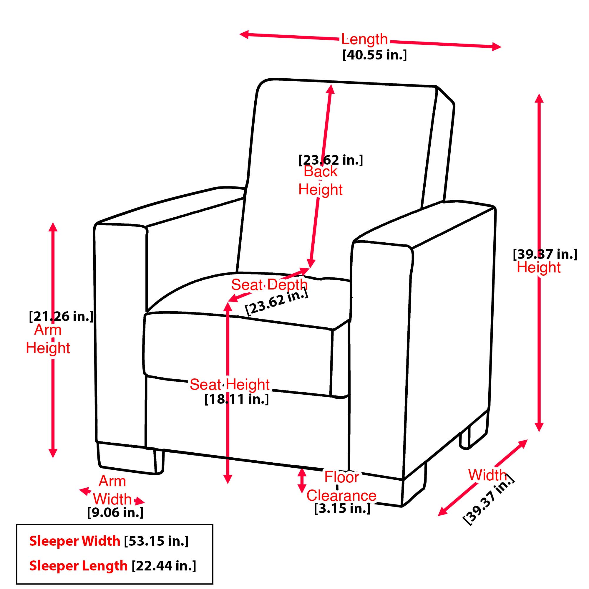- FASHIONABLY CONVENIENT: With one swift motion, transform this armchair into a sleeper that measures in at 22.4''x 53.2'' or utilize the included storage compartments for your very own storage needs. ASSEMBLY made easy in 30 minutes or less! DISCLAIMER: ITEMS IN IMAGES SOLD SEPARATELY