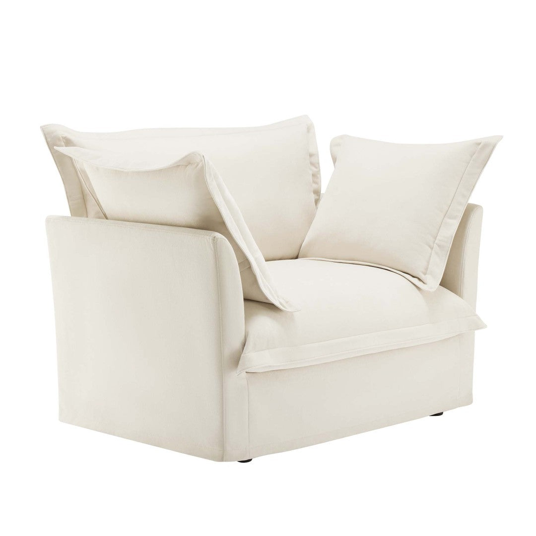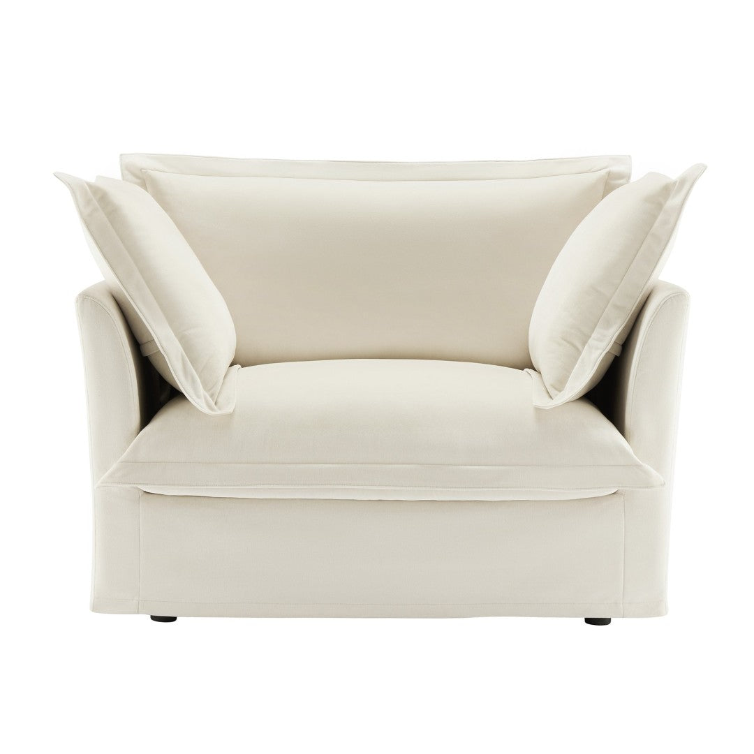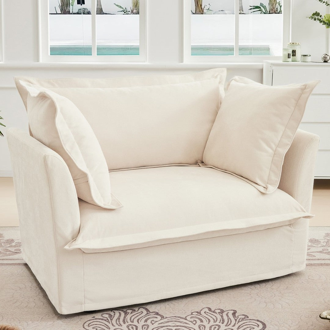 Sink into casual luxury with this slip-covered armchair designed for deep comfort and easy living. Upholstered in soft, breathable chenille and finished in a versatile cream, the chair combines a relaxed silhouette with thoughtful details—removable covers, plush cushions, and a sturdy wood frame—making it ideal for reading nooks, bedrooms, or living rooms where comfort and low-maintenance style matter.