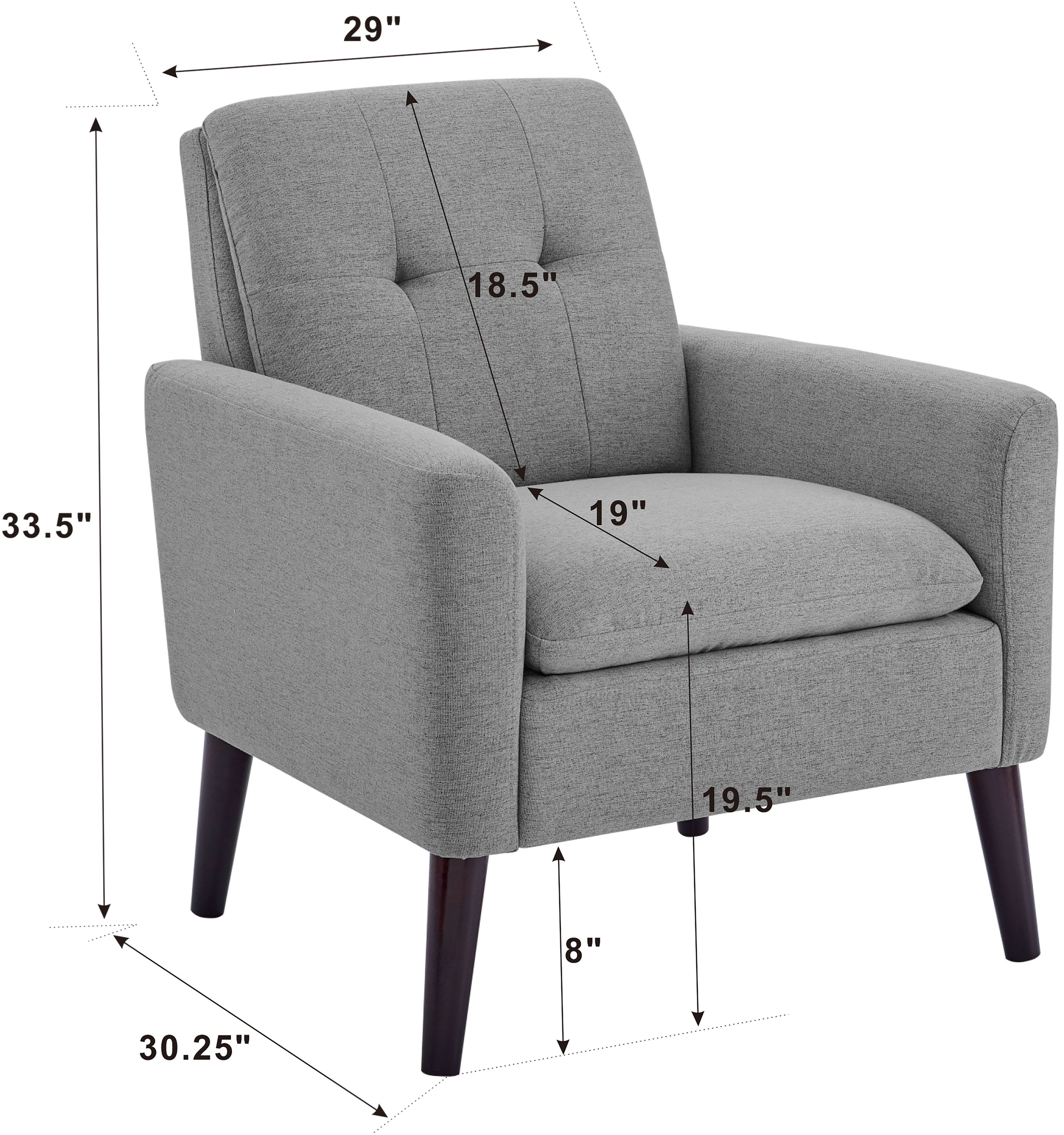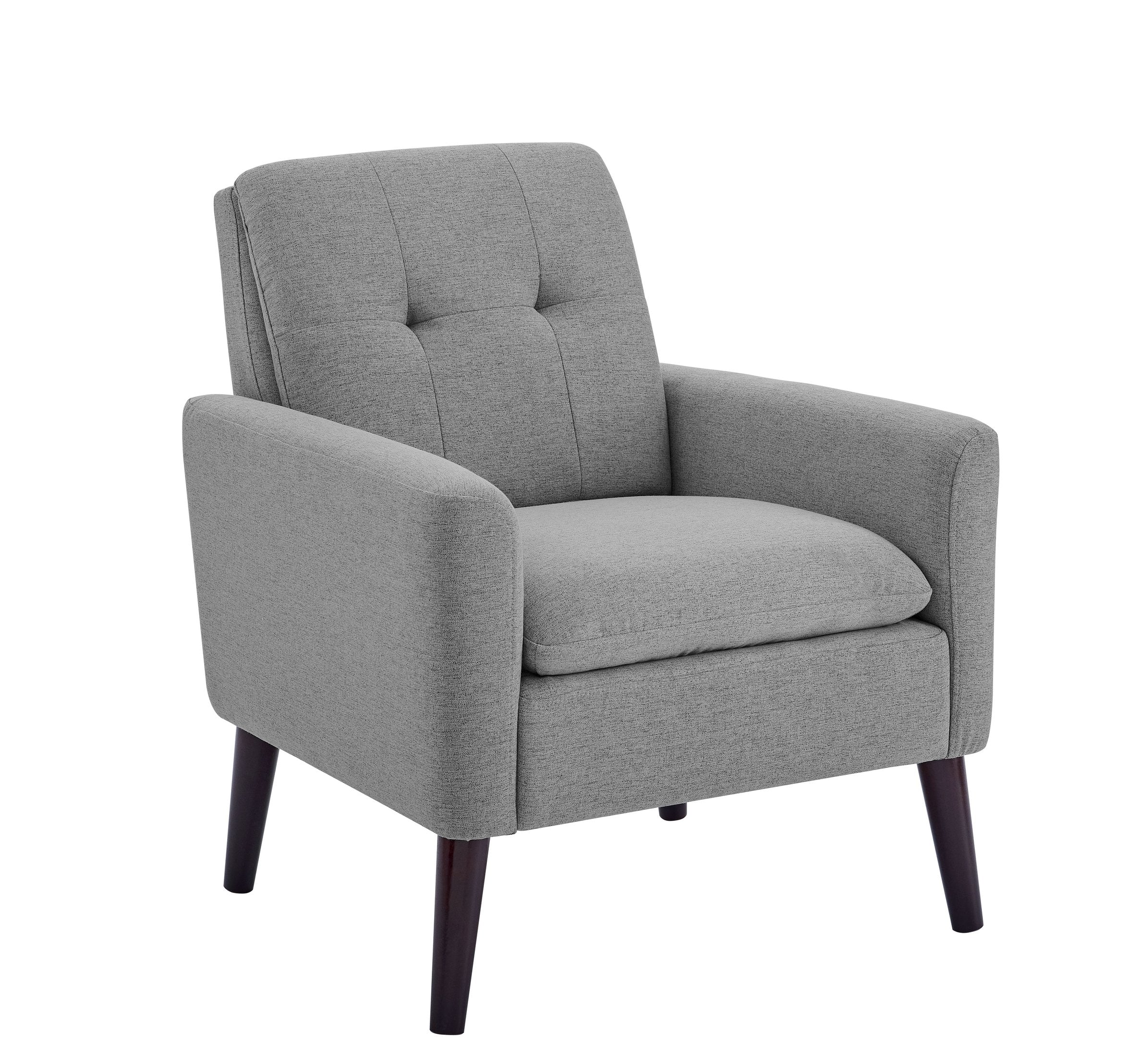 Sink into modern comfort with this tufted upholstered armchair, designed to blend mid-century style with everyday relaxation. Its boxy silhouette and generous padding make it an inviting accent for living rooms, bedrooms, or reading nooks, while the neutral gray upholstery and warm wood legs complement a wide range of decor.