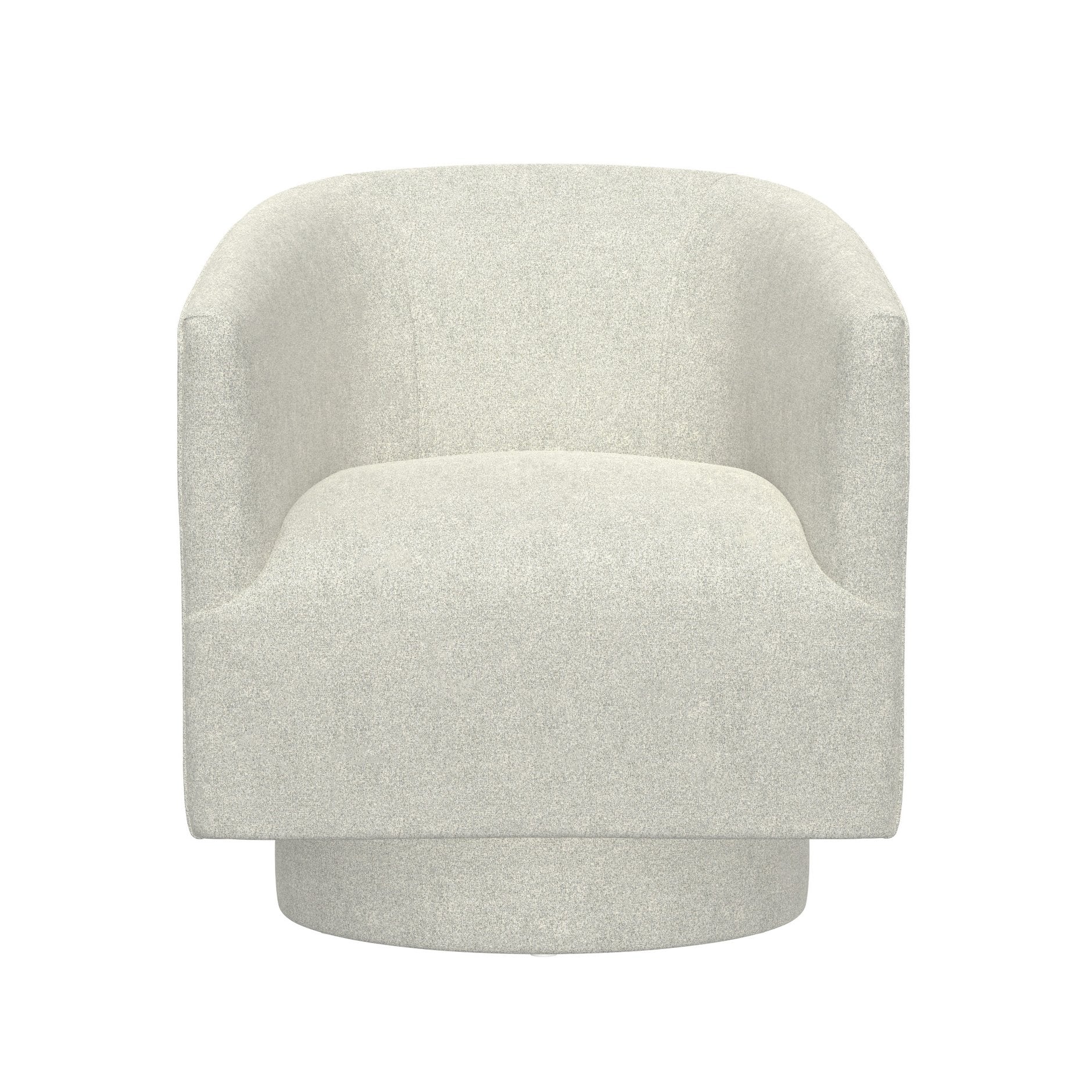 Introduce a sleek, modern focal point to your living space with this White Swivel Accent Chair. Upholstered in a lunar white fabric, it combines contemporary styling with comfortable seating and a practical swivel base—perfect for conversation areas, bedside nooks, or home offices where mobility and style matter.