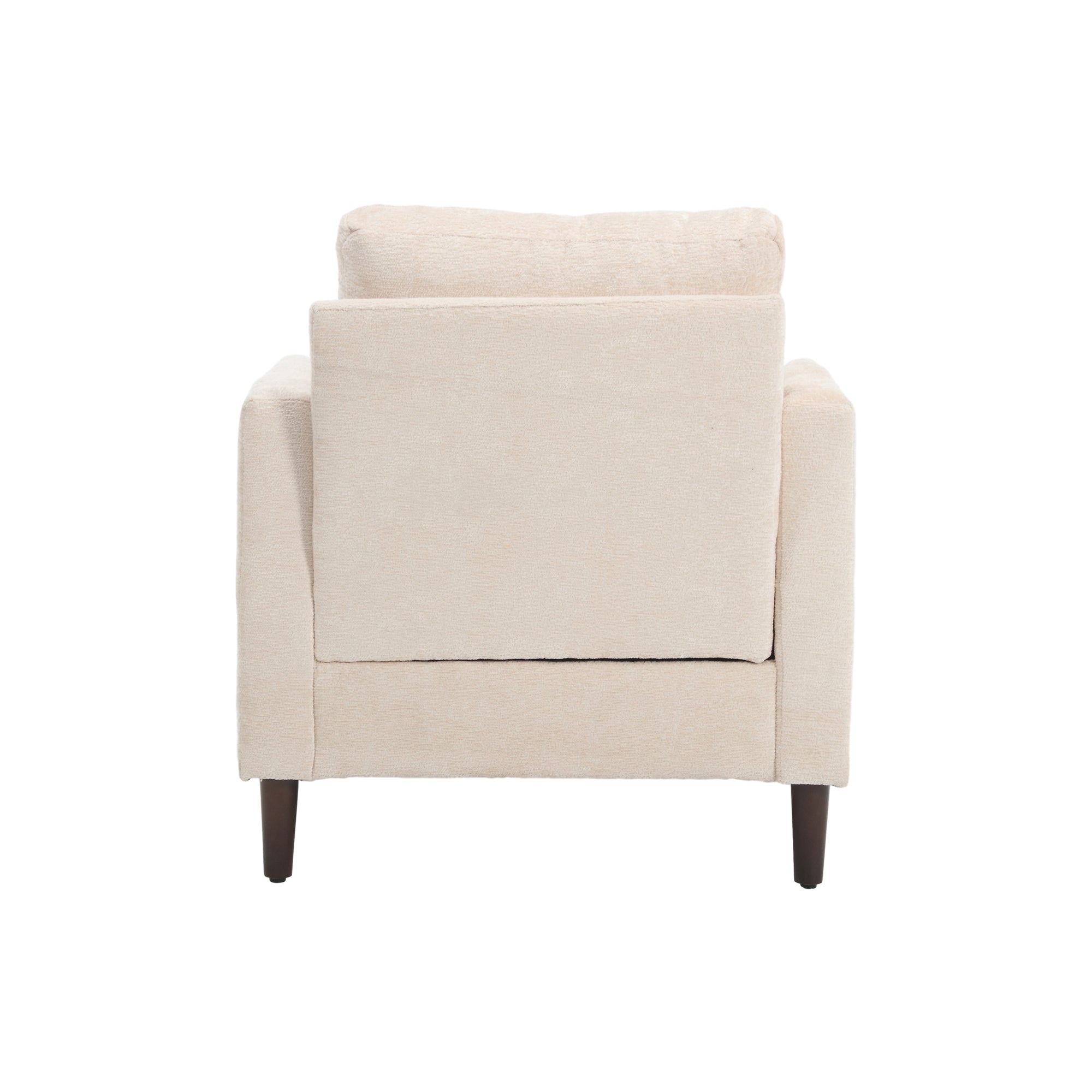 Sink into timeless comfort with this mid-century modern accent armchair — a stylish addition to living rooms, bedrooms, or reading nooks. Upholstered in soft, breathable beige chenille and supported by a solid wood frame, the chair combines plush seating, thoughtful ergonomics, and refined details (tufting and studded trim) to create a cozy focal point that complements contemporary and classic interiors alike.
