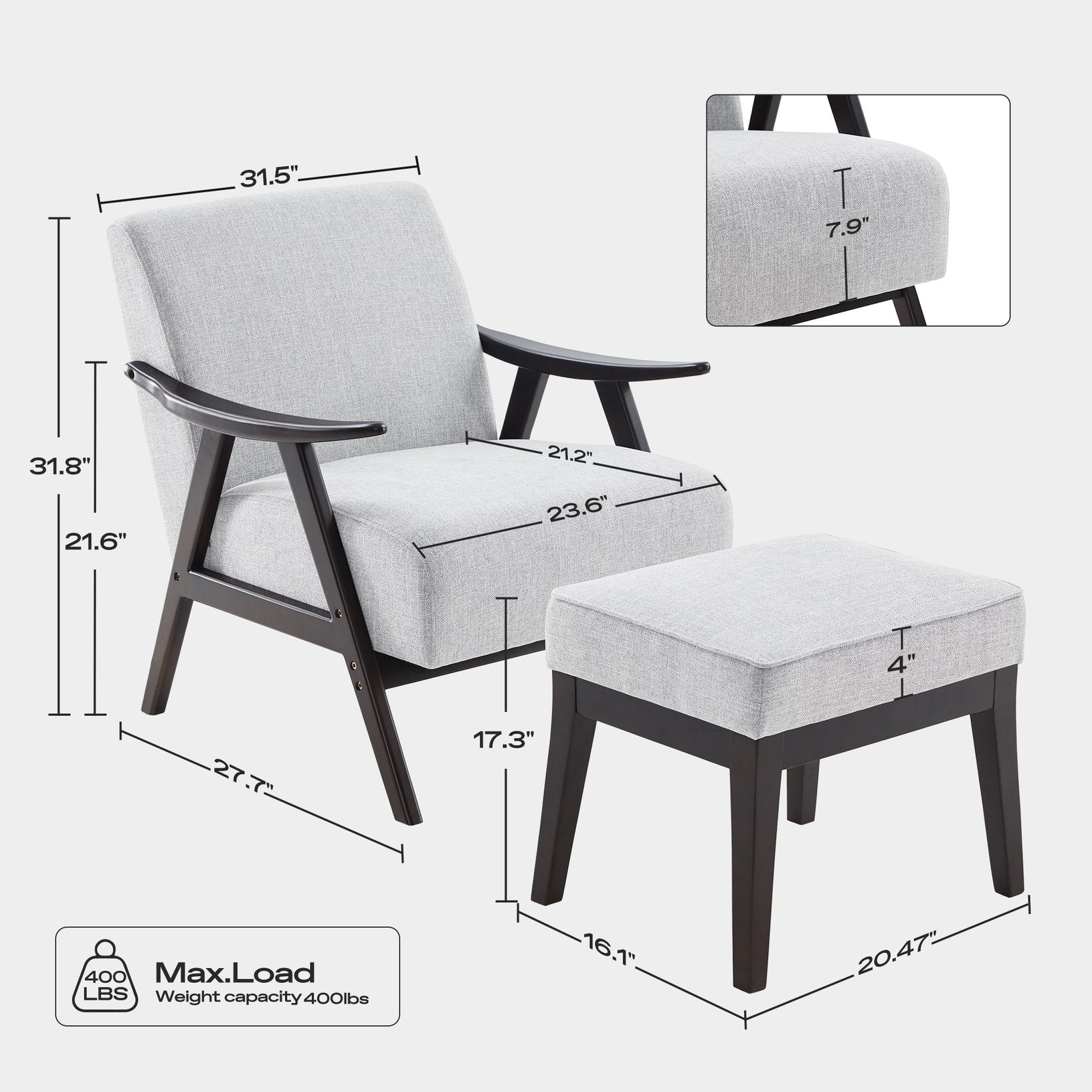 Give your living space instant warmth and style with this mid-century inspired accent chair and ottoman set. Upholstered in soft, breathable polyester linen and supported by solid wood arms and legs, the chair offers a comfortable retreat for reading, coffee breaks, gaming or relaxing. The compact footprint fits well in living rooms, bedrooms, home offices or reading nooks while the classic silhouette and neutral gray finish complement a wide range of decors.