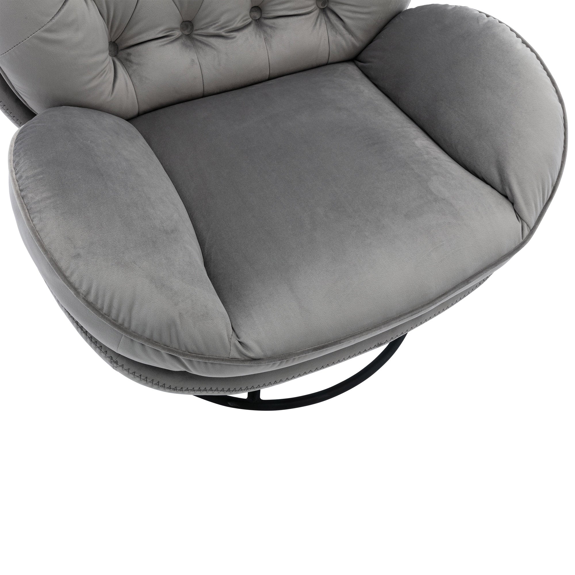 Refresh your living space with this stylish grey velvet accent chair and matching ottoman—designed for comfort, versatility, and modern appeal. Ideal for living rooms, reading nooks, or as a TV chair, this compact swivel seat combines soft upholstery, a sturdy metal frame, and a coordinating ottoman to create a polished, usable focal point in your home.
