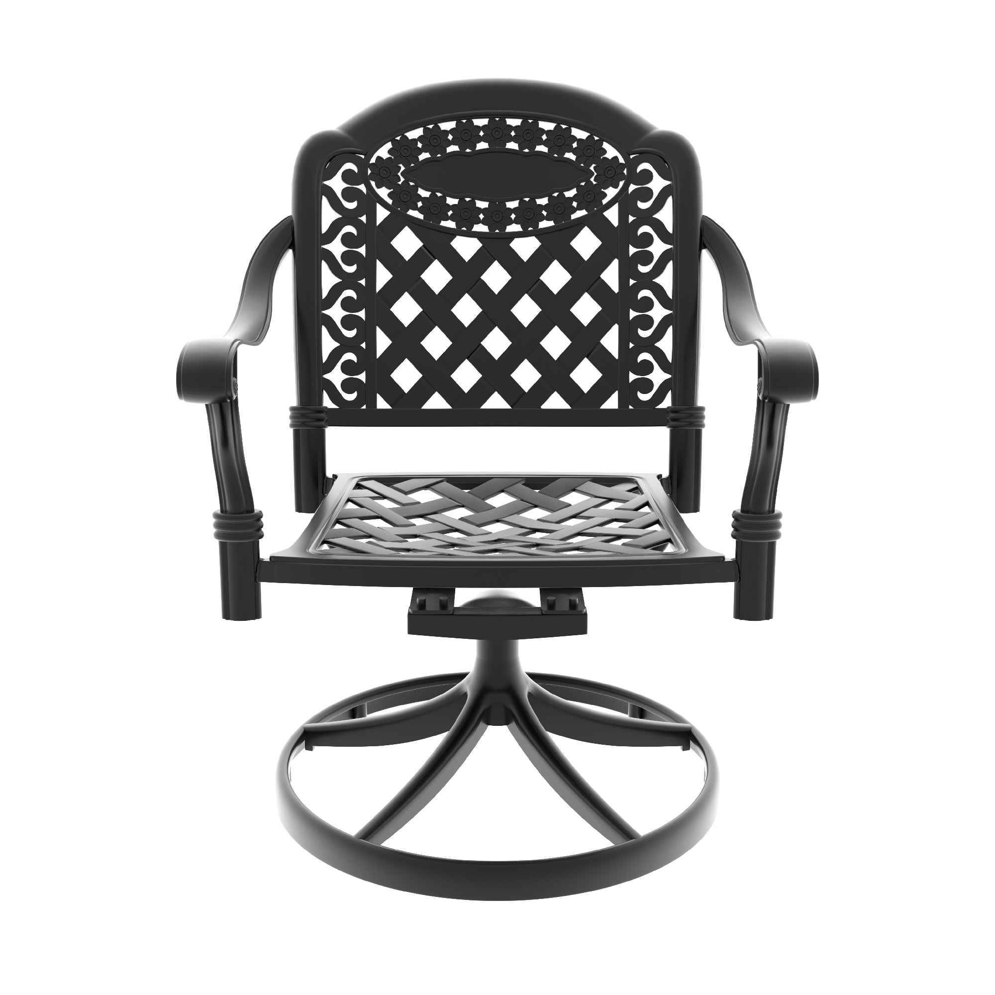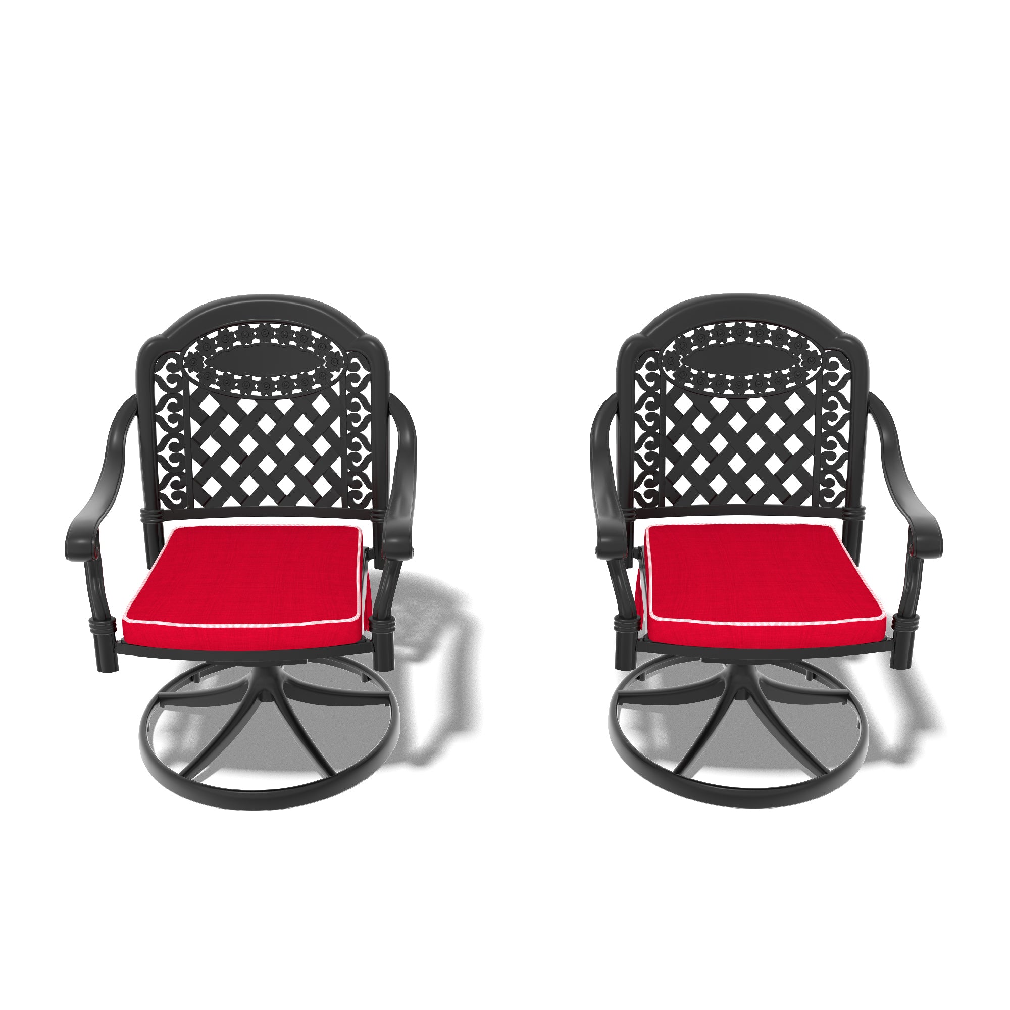 Upgrade your outdoor seating with this elegant Cast Aluminum Patio Swivel Chair set, featuring a durable black frame and vibrant red cushions for a stylish, comfortable addition to any patio or deck. Built with rust-resistant cast aluminum and supportive cushions, these swivel chairs combine lasting performance with eye-catching design—perfect for relaxing, entertaining, or adding a pop of color to your outdoor living space.