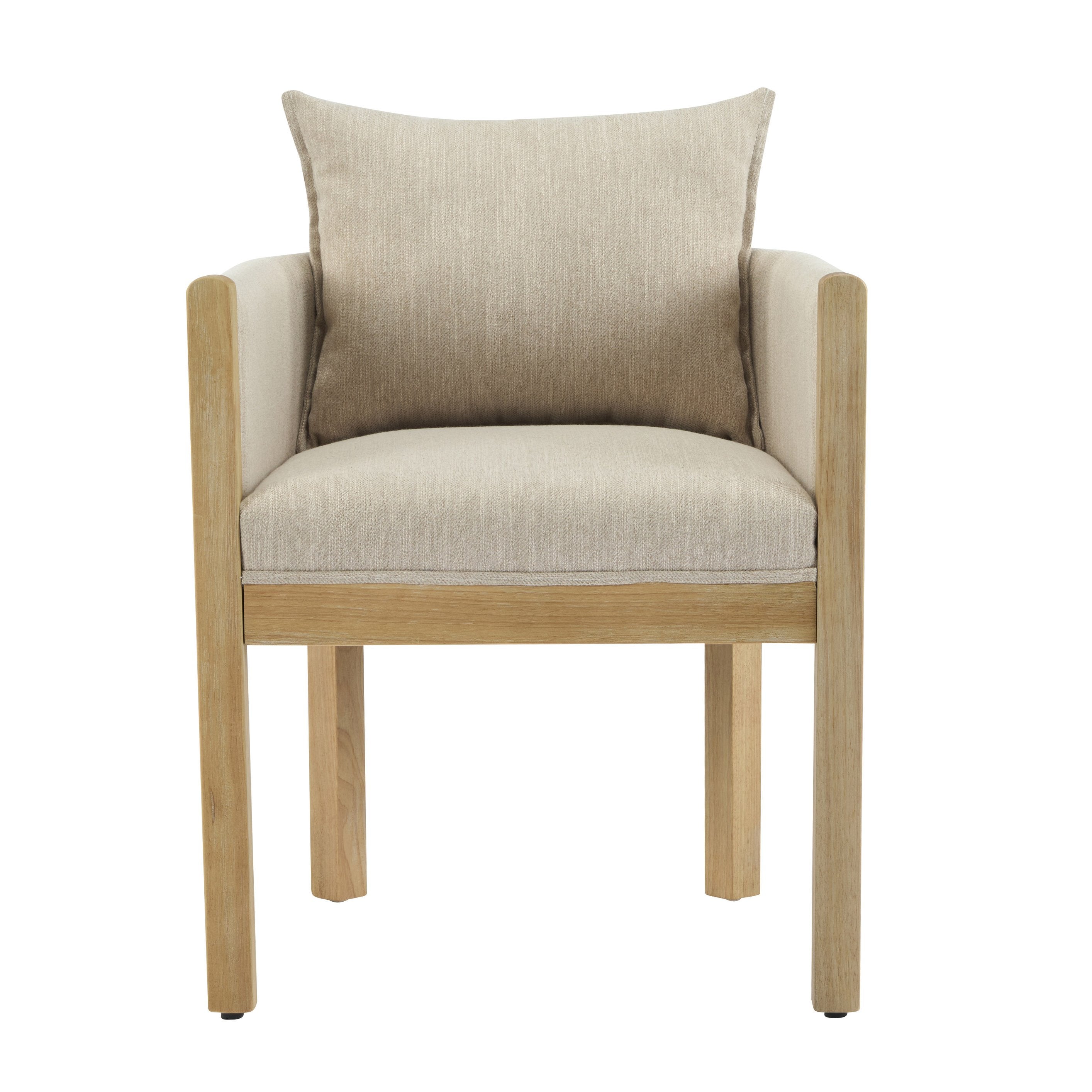 Bring a warm, organic touch to your dining room or casual seating area with this set of two linen-upholstered armchairs. Clean lines and natural rubber wood legs combine with soft beige fabric to create a versatile look that complements rustic, Scandinavian, or modern farmhouse interiors. Thoughtfully padded and designed with supportive armrests, these chairs offer everyday comfort and stylish balance at the table or as accent seating.