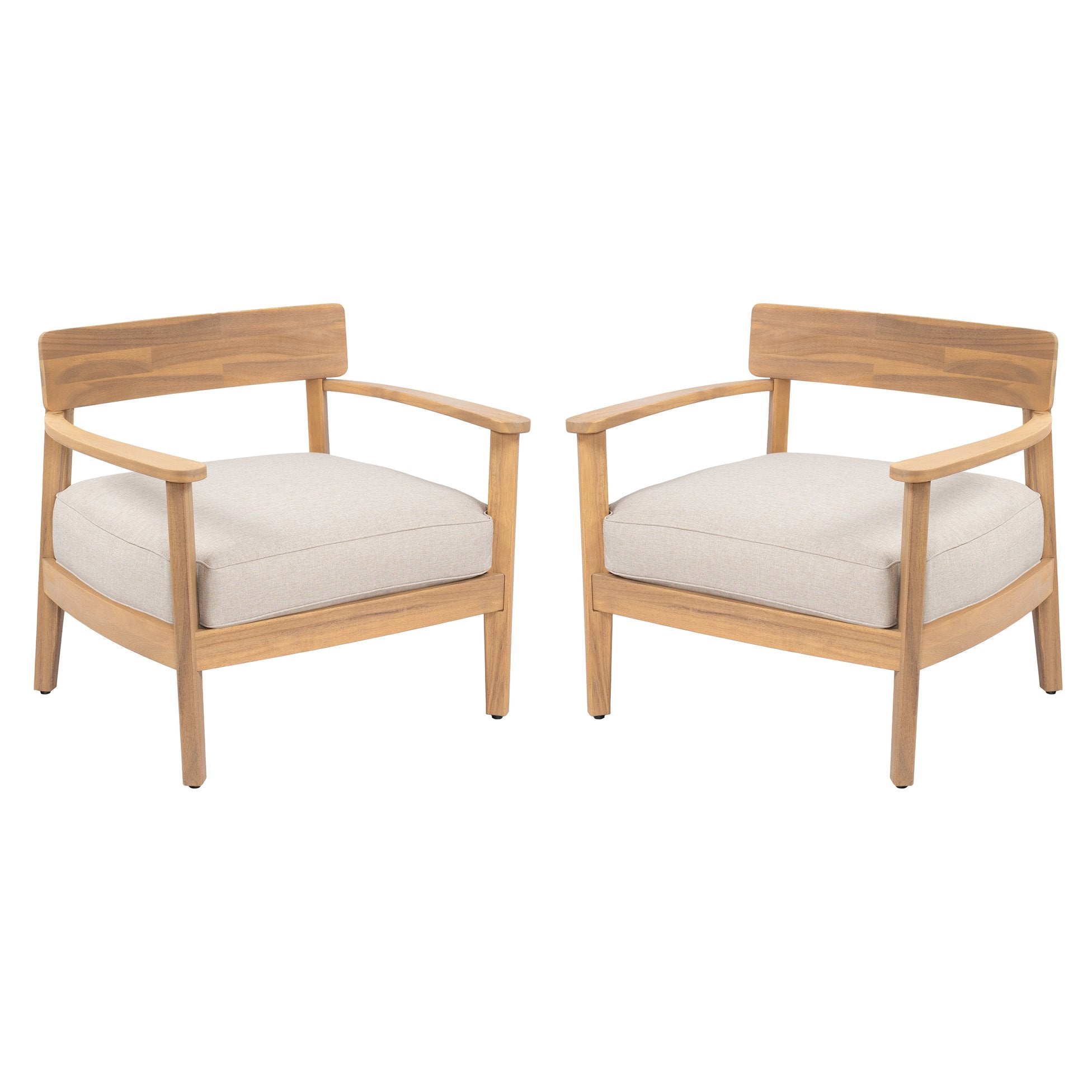- Set Includes: Two (2) acacia wood club chairs with seat cushions