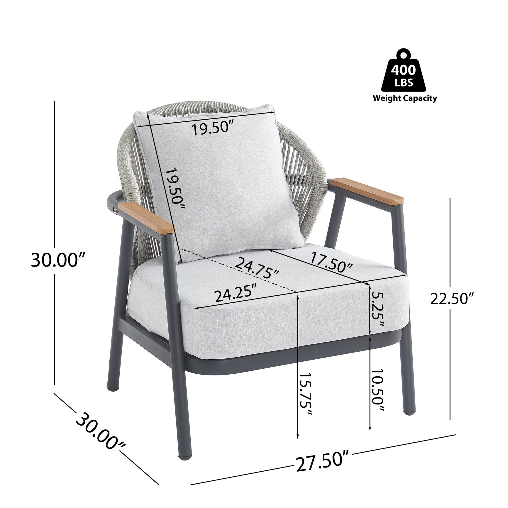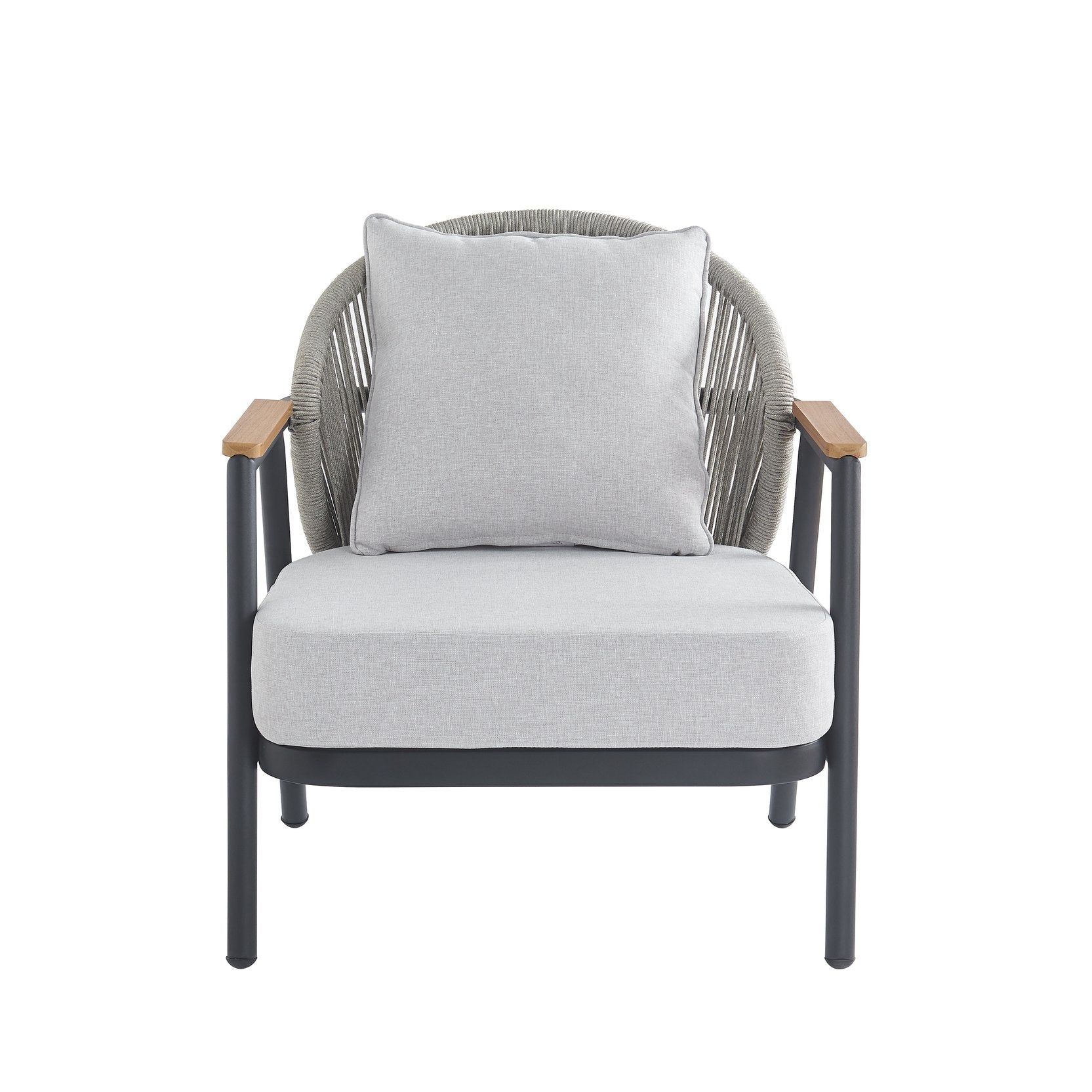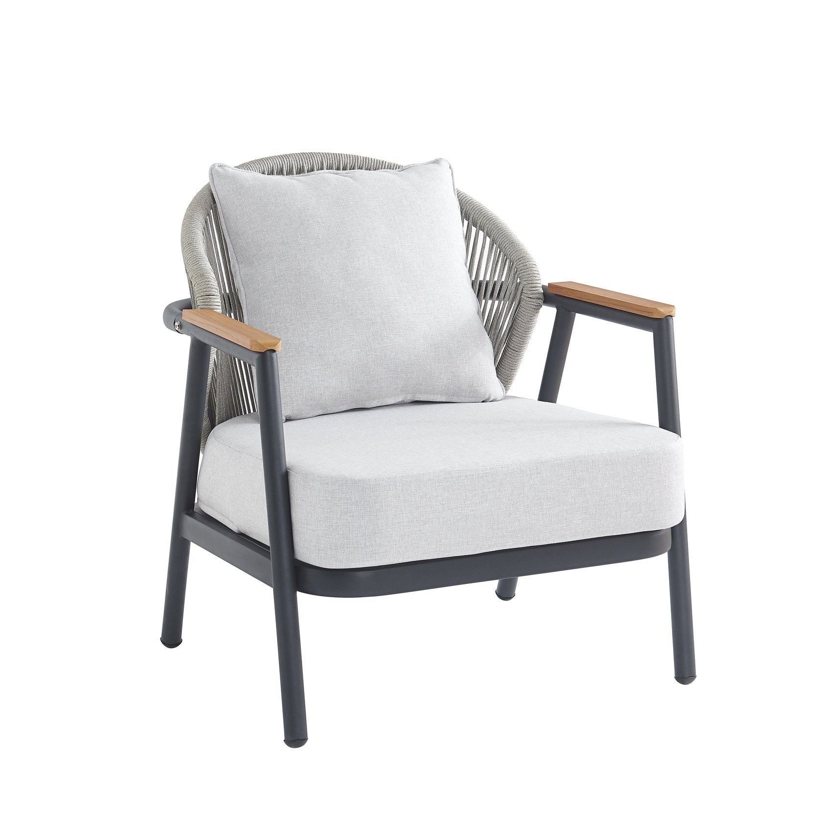 Bring timeless comfort and coastal charm to your outdoor living area with this single-seat rope club chair. Combining a sturdy iron frame, breathable rope back, and plush cushion, it’s designed for everyday relaxation and stylish gatherings on the patio, deck, or sunroom.