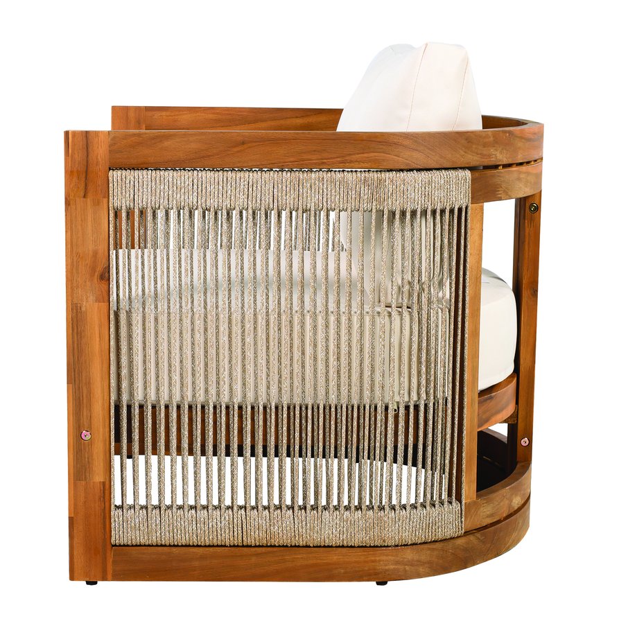 Bring relaxed sophistication to your outdoor living space with this Premium Acacia Wood Outdoor Club Chair. Combining solid acacia construction, a sculpted tub silhouette, and artisan woven rope accents, this chair delivers comfortable, weather-ready seating with refined, contemporary style—ideal for patios, porches, and garden nooks.